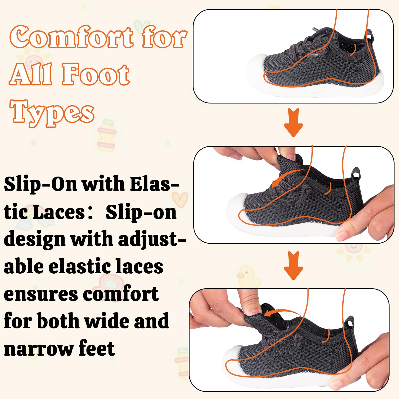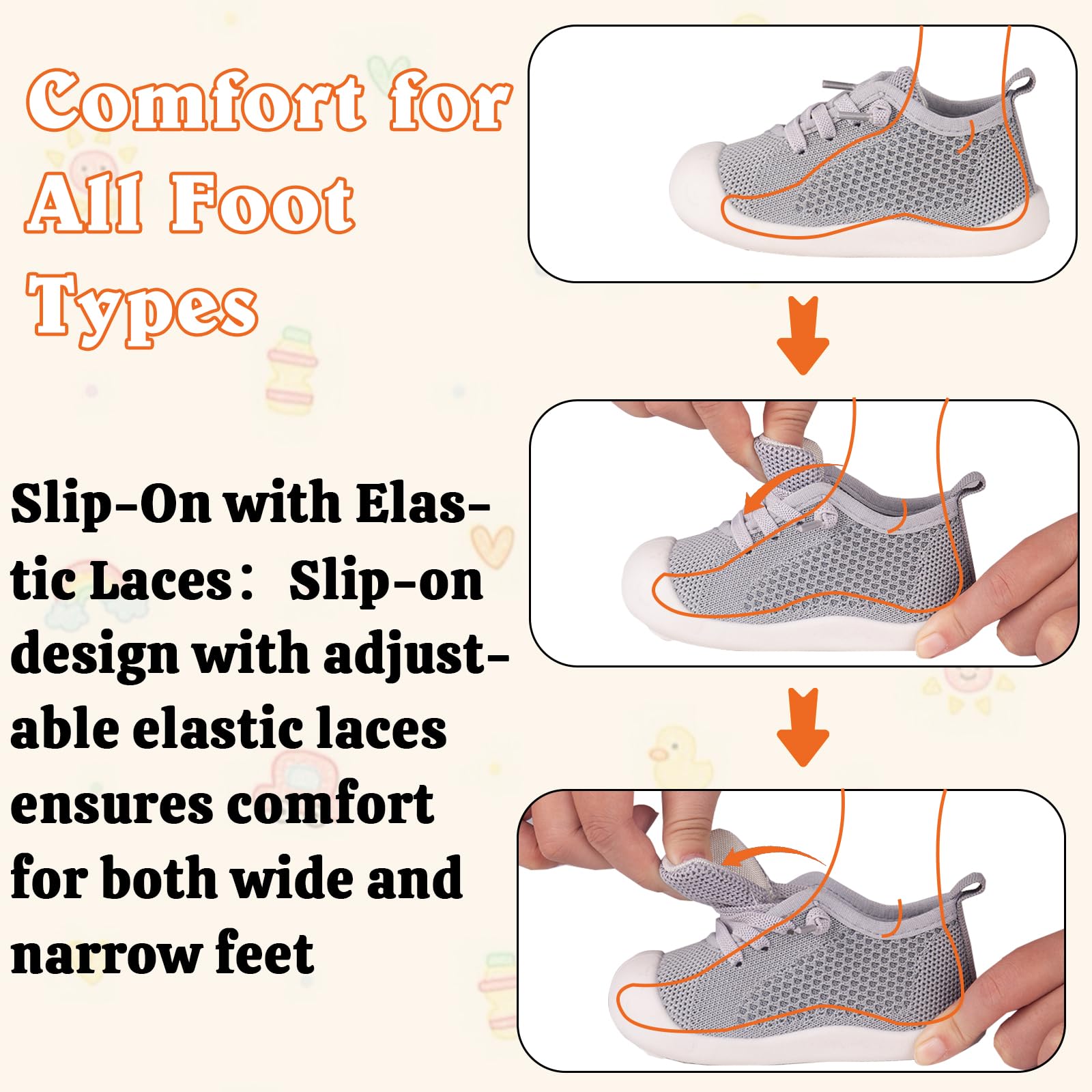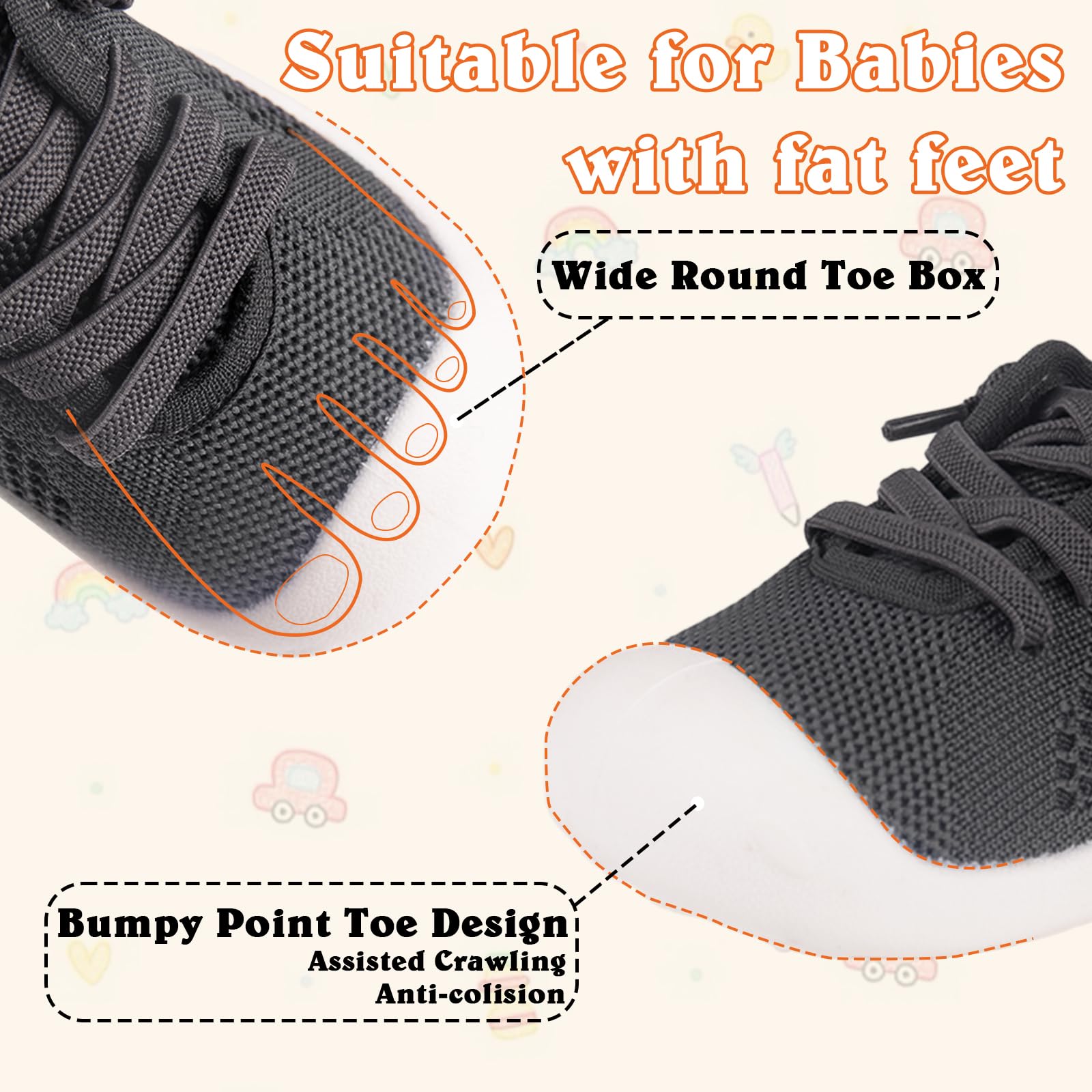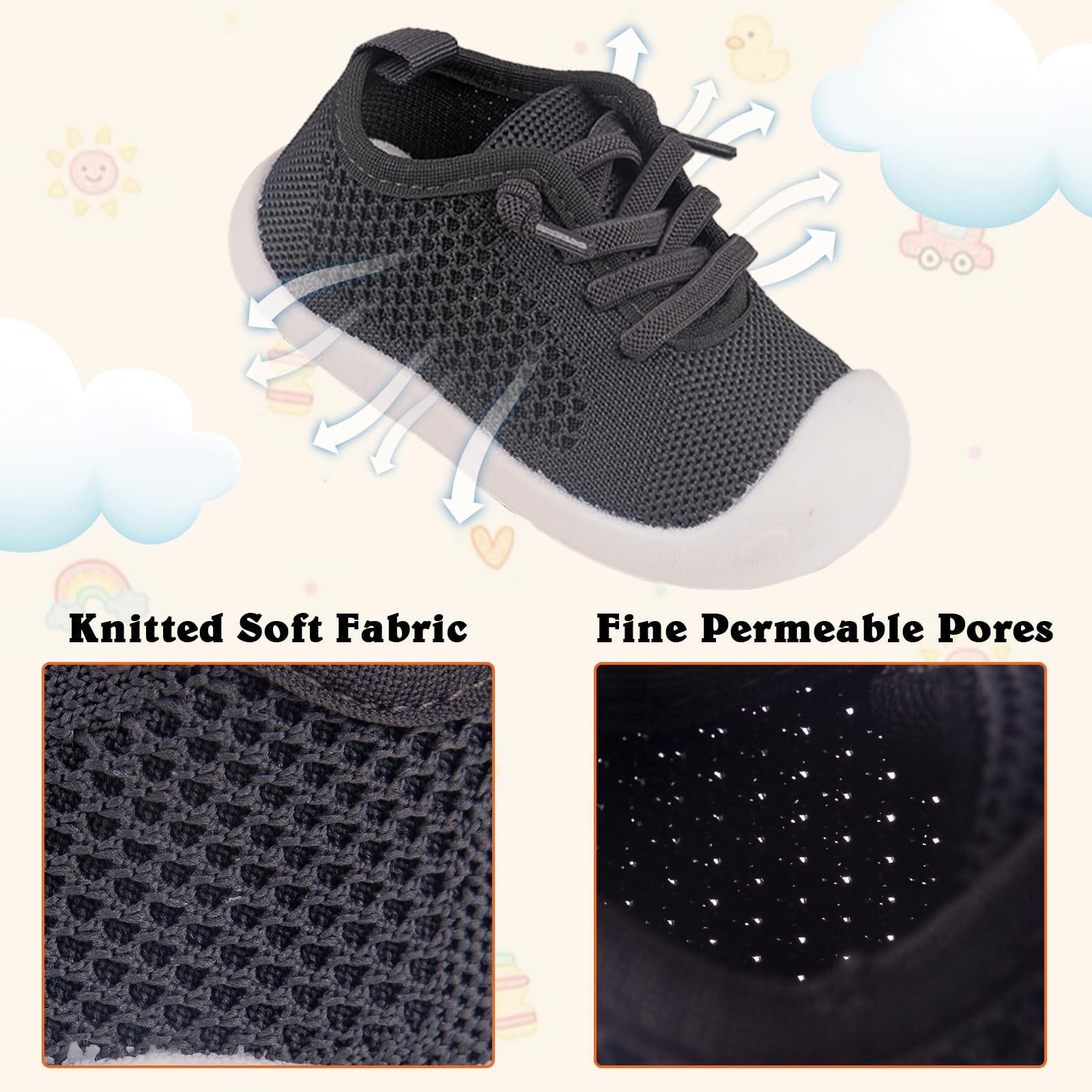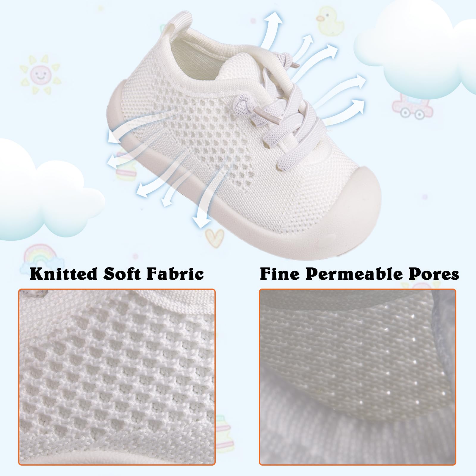 - Breathable and Safe for All-Day Comfort: Keep baby's feet cool and comfortable with the knitted cotton upper.TPR outsoles offer excellent traction and support,indoors and outdoors.Breathable material helps prevent odor,ensuring fresh and safe feet