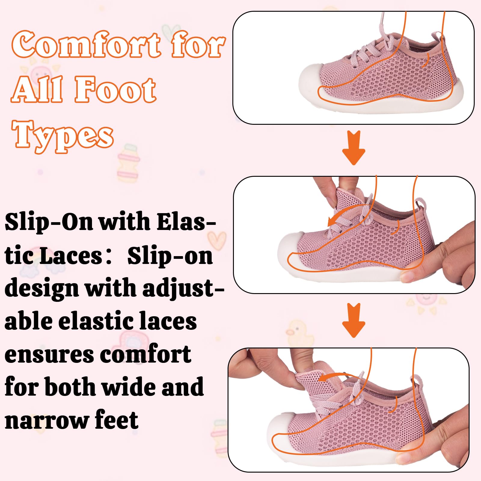 - Stylish and Adjustable for Growing Feet: Unique lace-up design for a perfect fit, with a convenient slip-on feature.The wide toe box and removable insole provide extra comfort and adjust as your baby grows.A smart investment for growing feet
