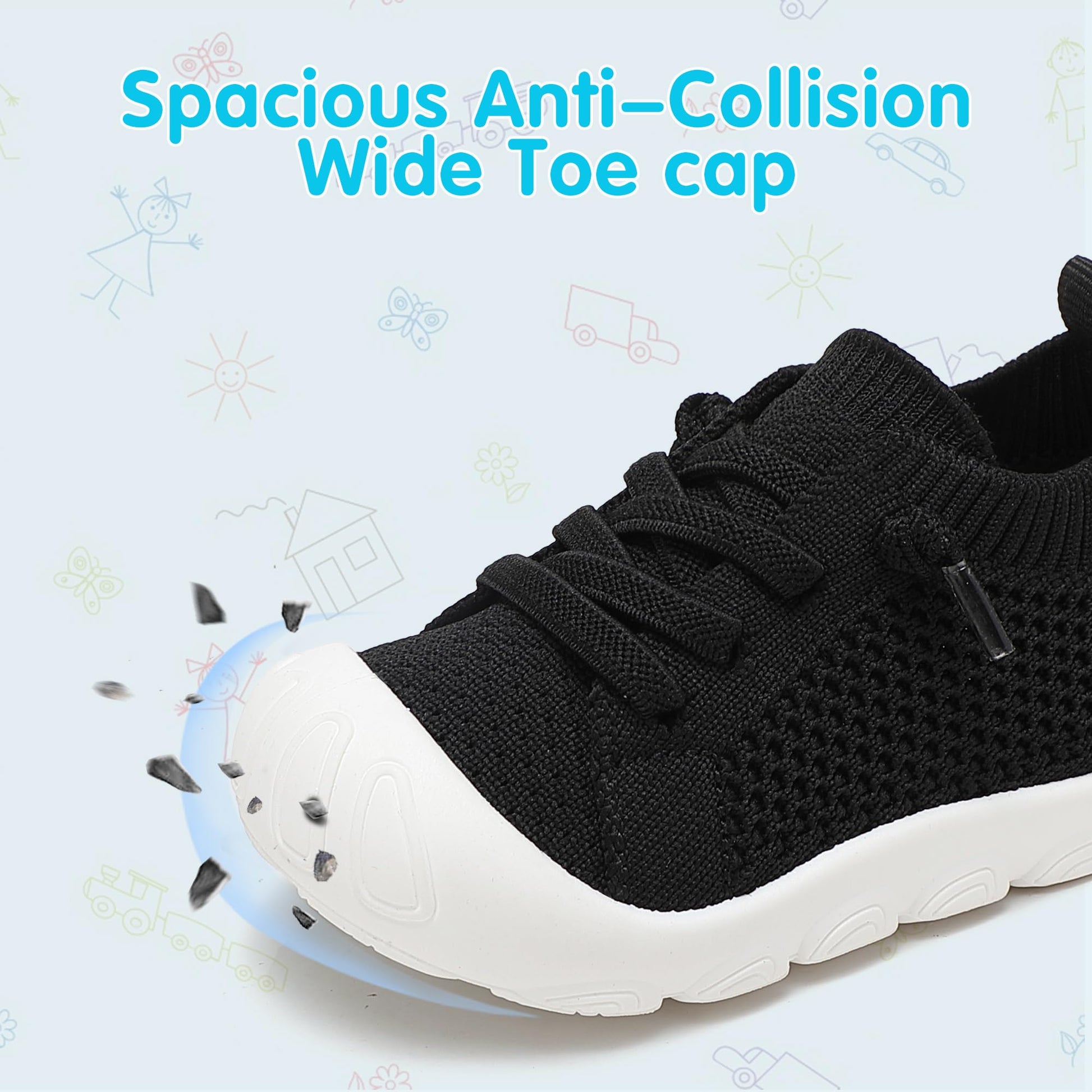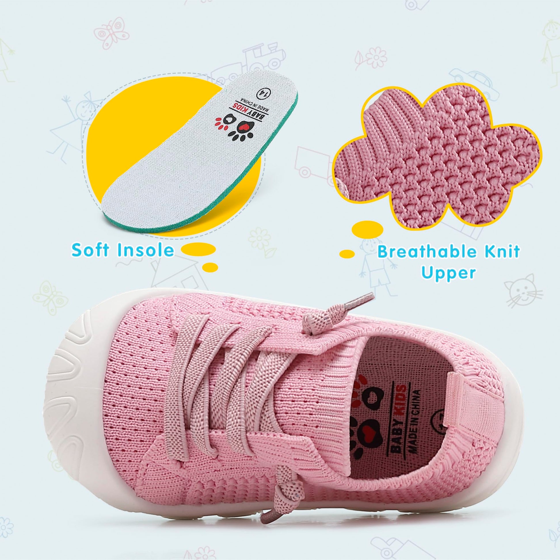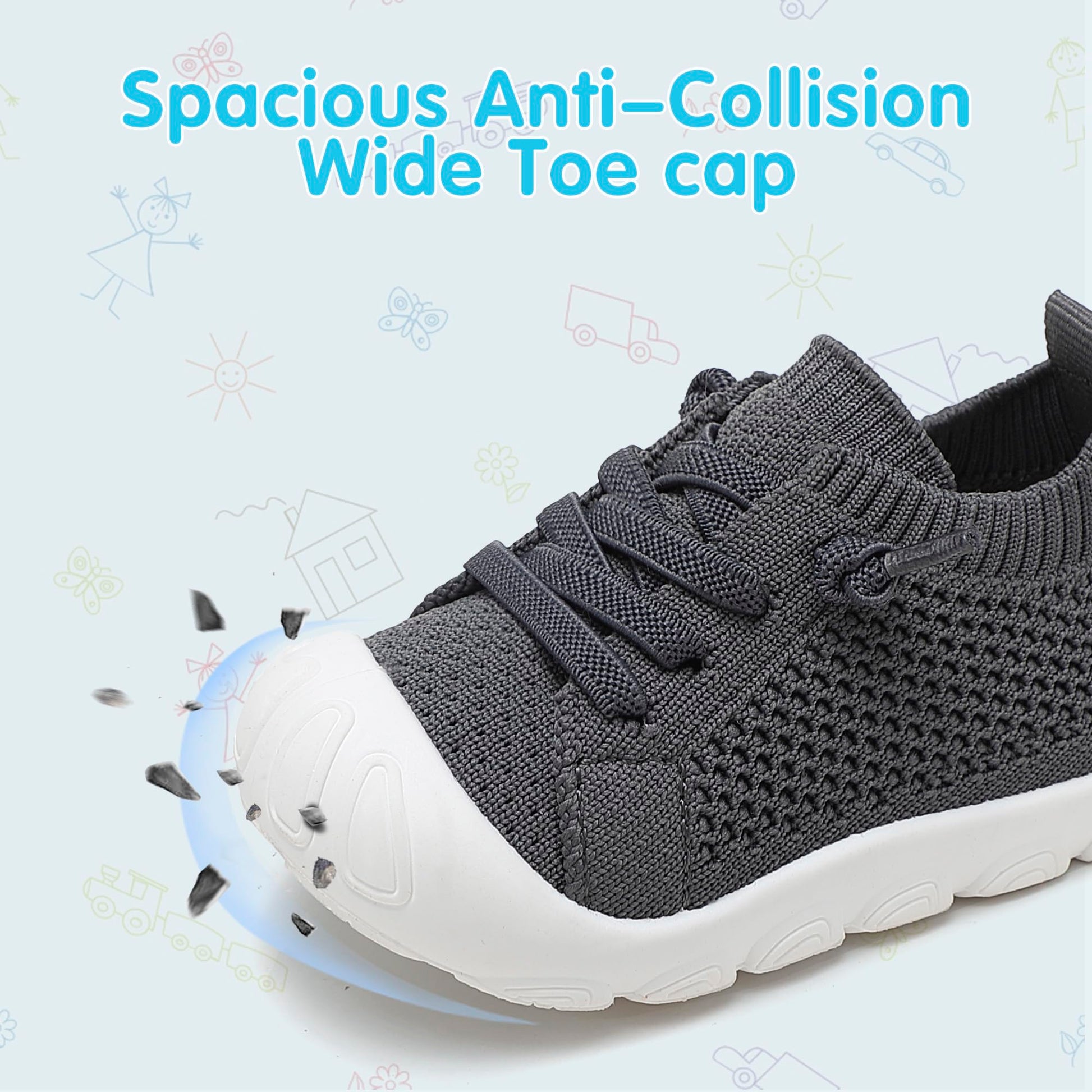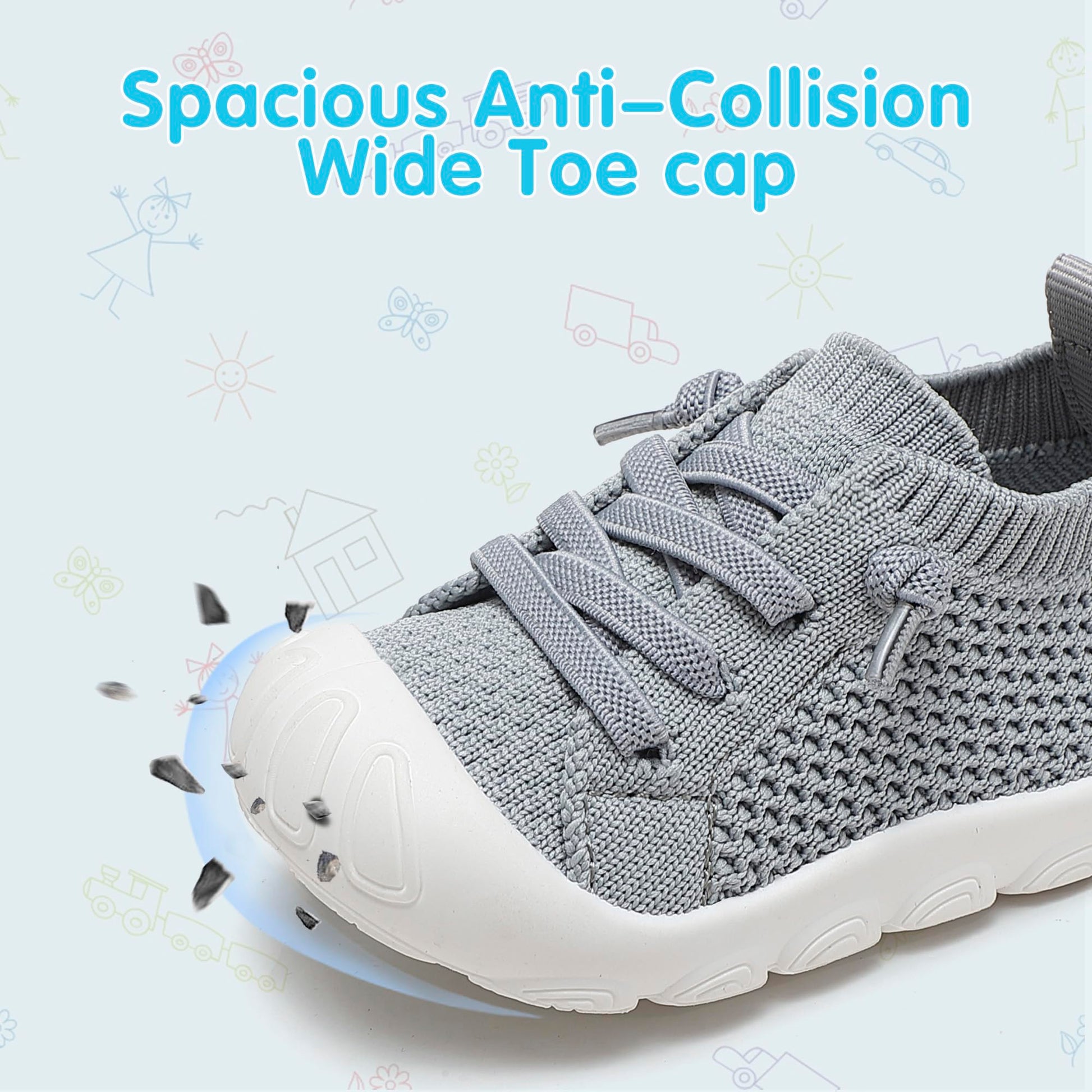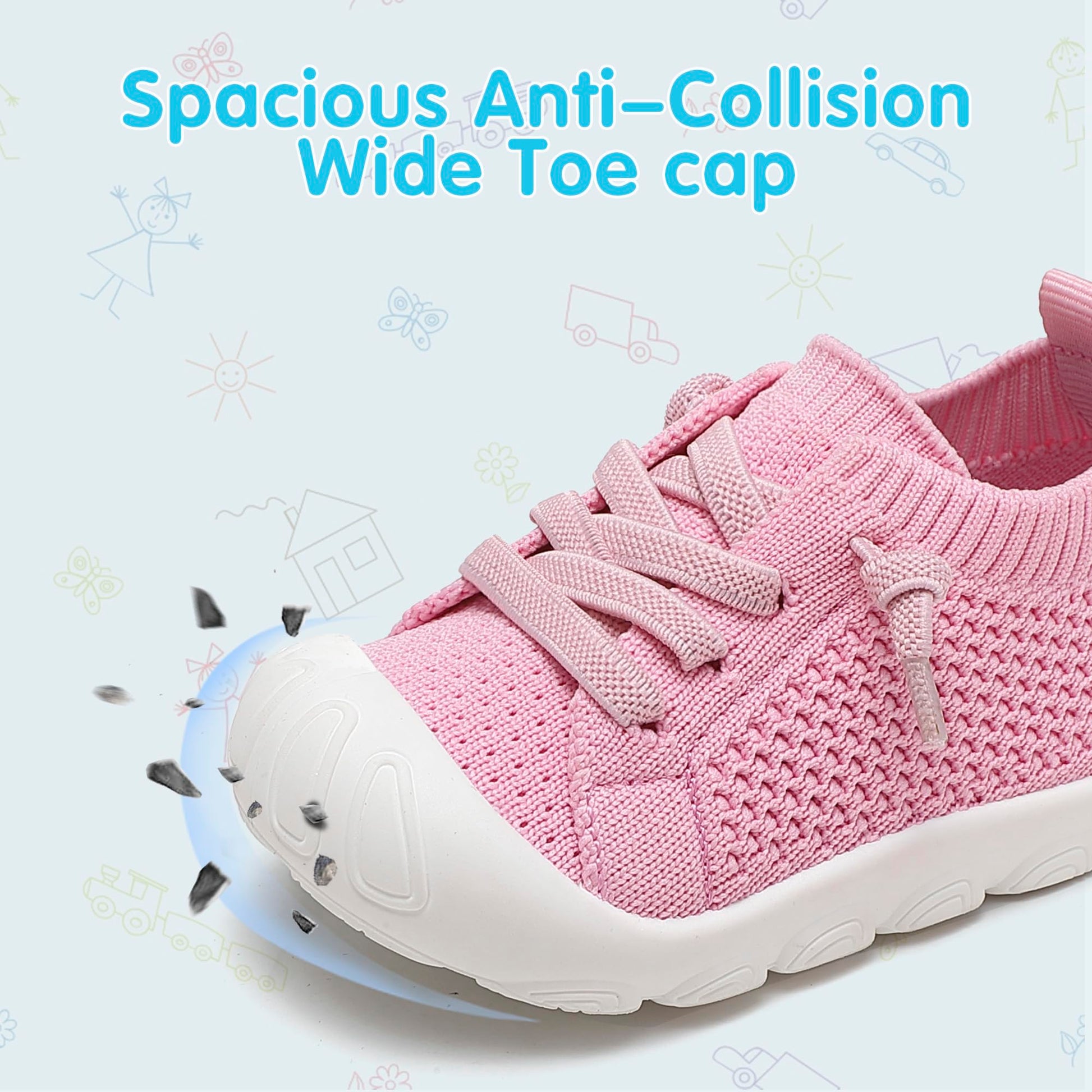 - Non-slip & Anti-collision soles:The wide toddler shoes and toddler sneakers sole is ultra-light with grip to prevent falls and good support. The baby toddler walking shoes feature a bump toe that adds an extra barrier to protect baby's feet from injury.