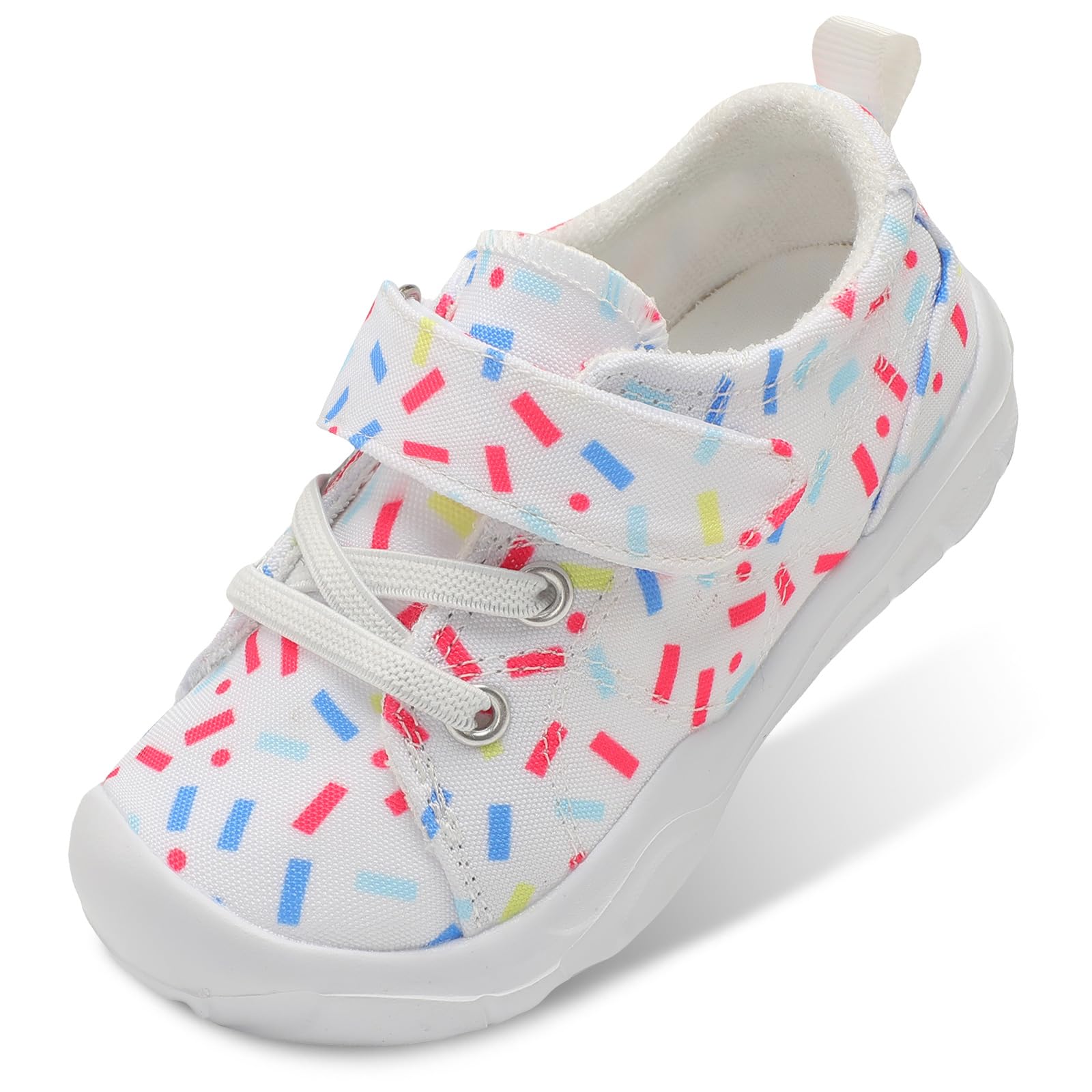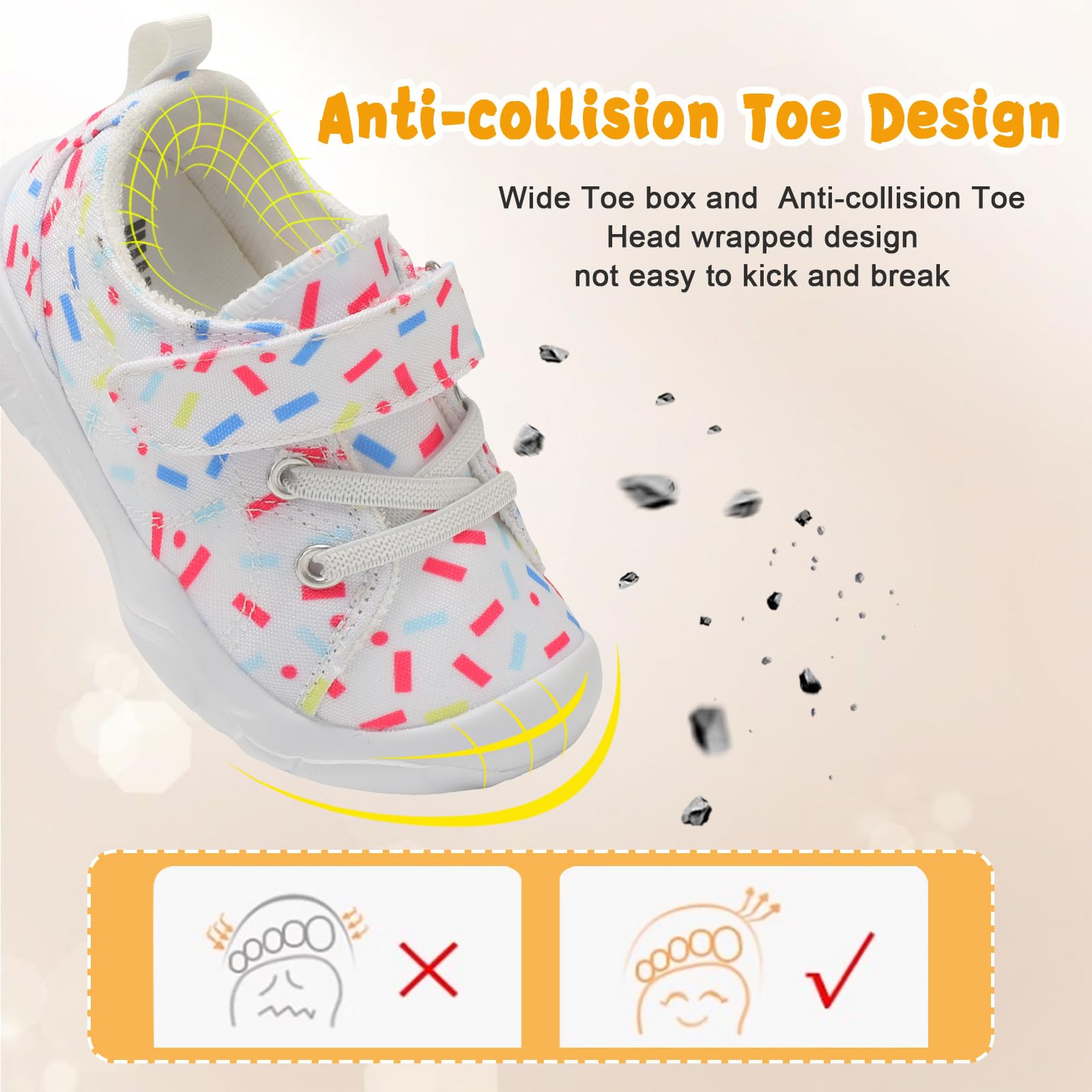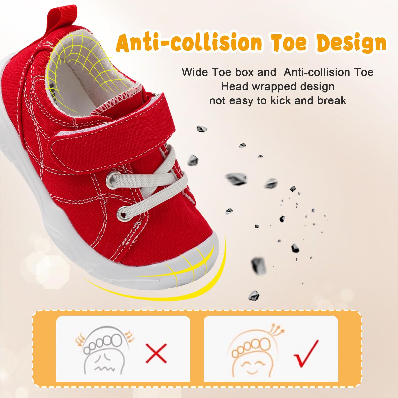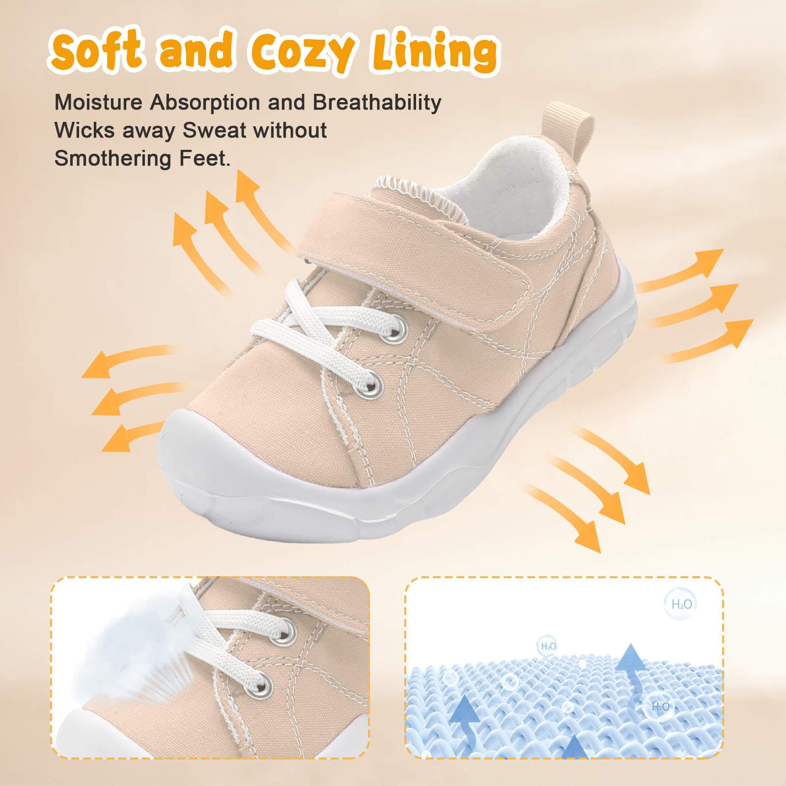 - Skin-friendly Material: These soft shoes for girls boys are made of high qualify canvas material, huges baby feet to keep them flexible and comfortable.The insole is a memory insole, which fits the shape of the baby's feet and make them feel like walking on clouds