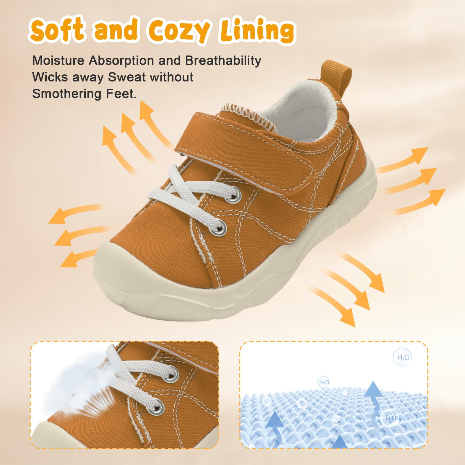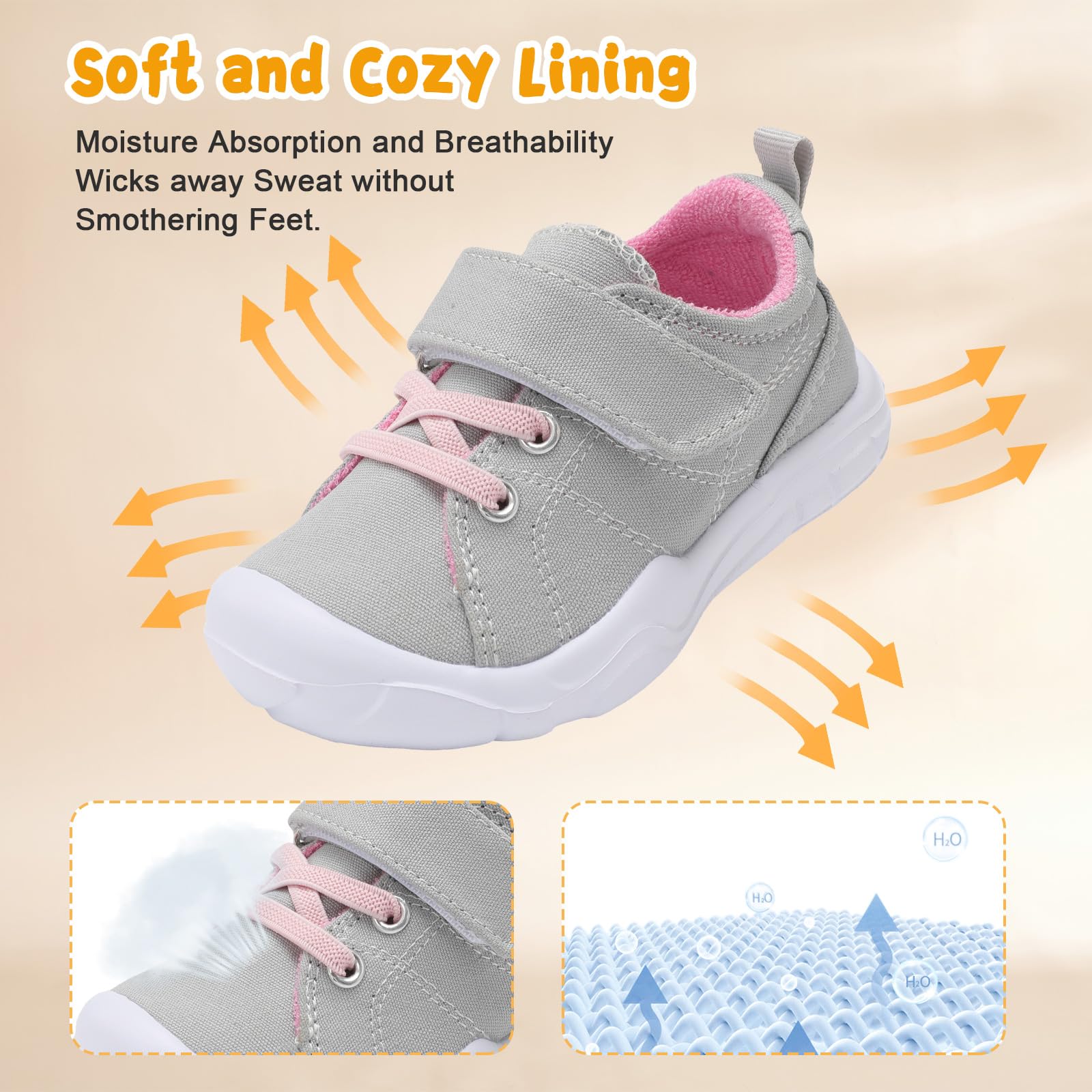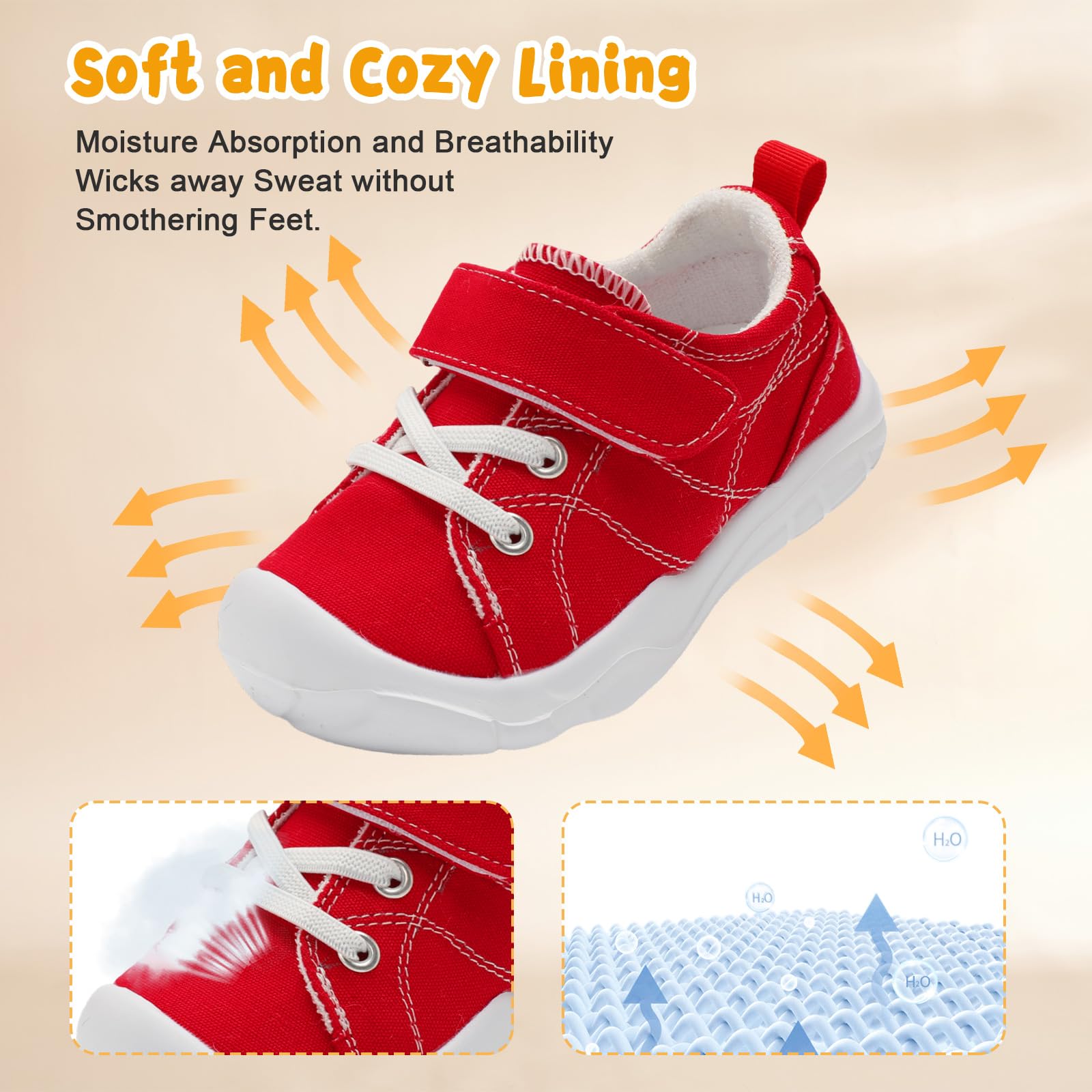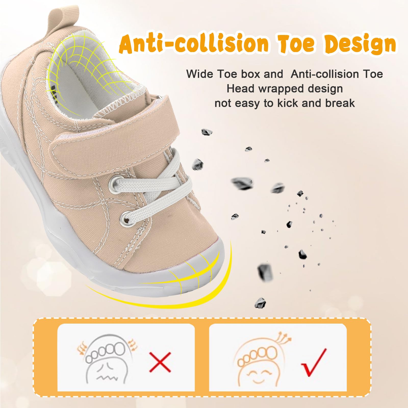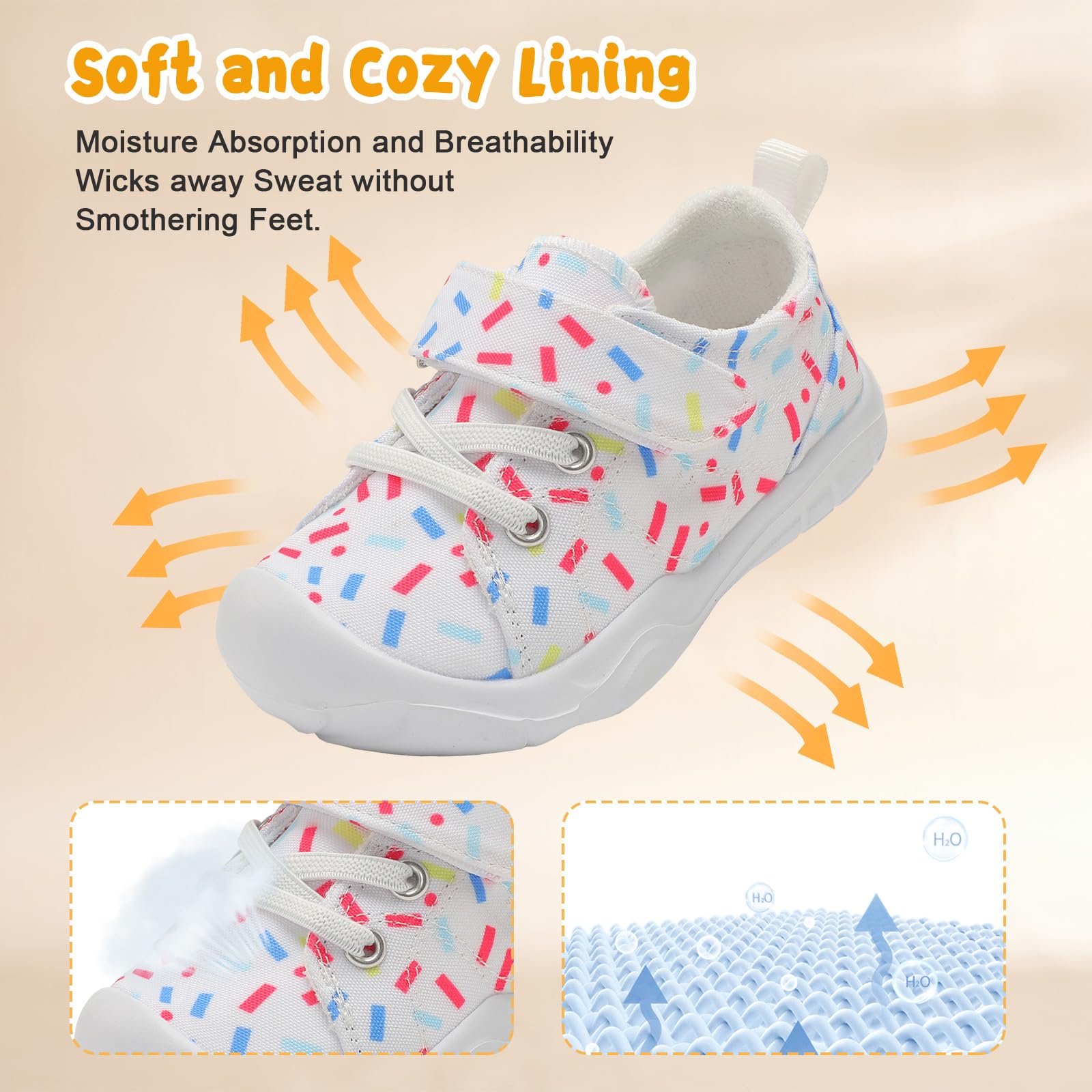 - Skin-friendly Material: These soft shoes for girls boys are made of high qualify canvas material, huges baby feet to keep them flexible and comfortable.The insole is a memory insole, which fits the shape of the baby's feet and make them feel like walking on clouds