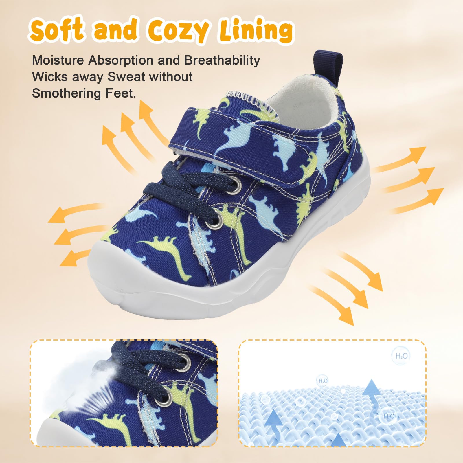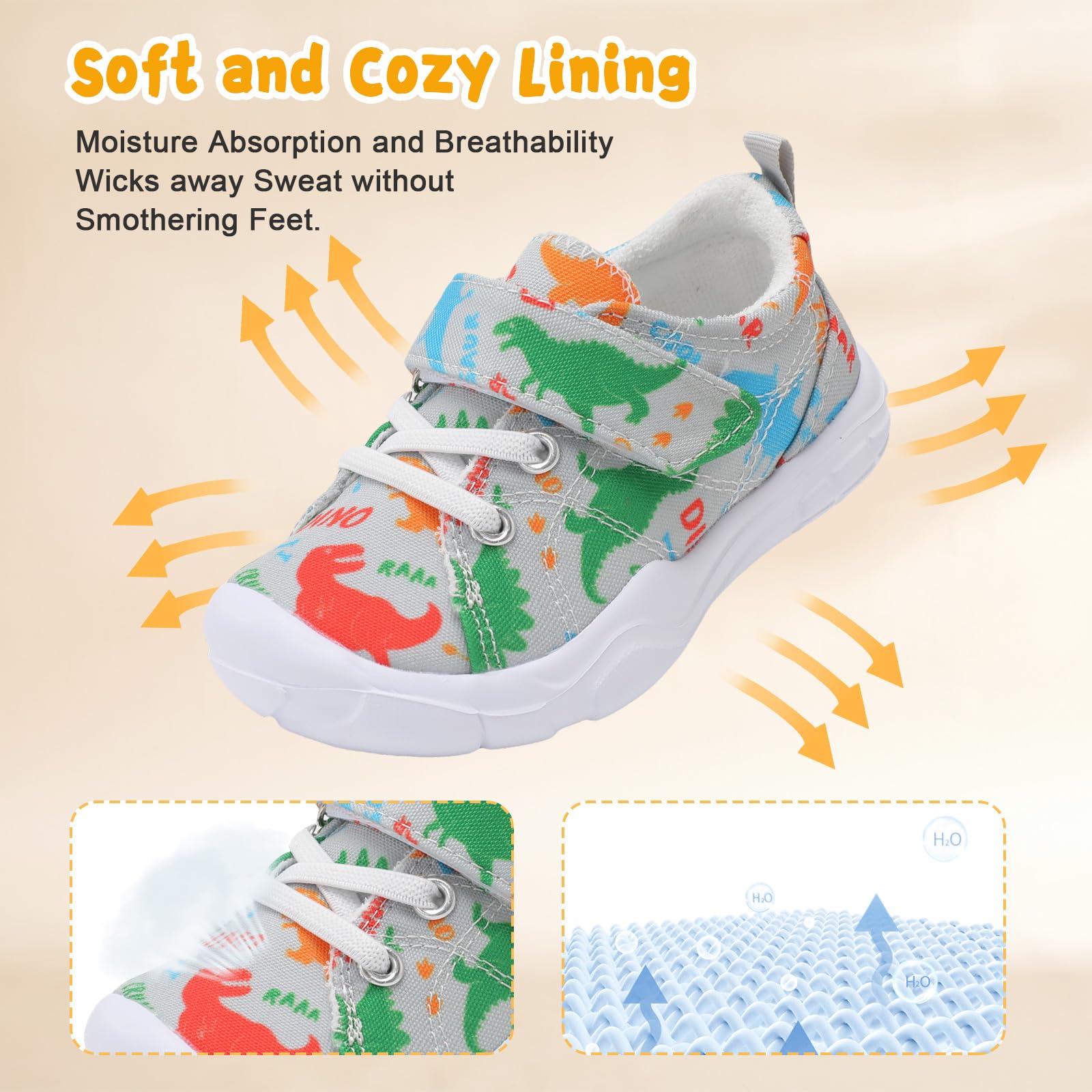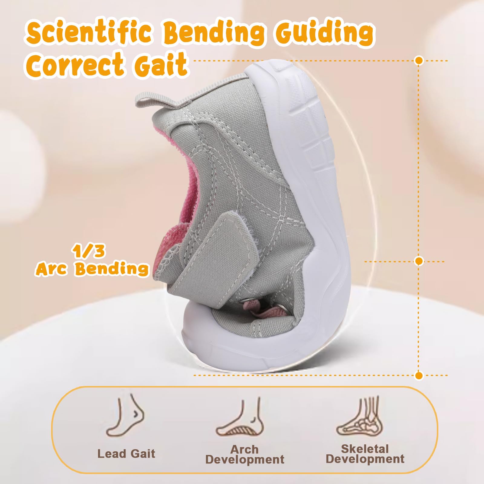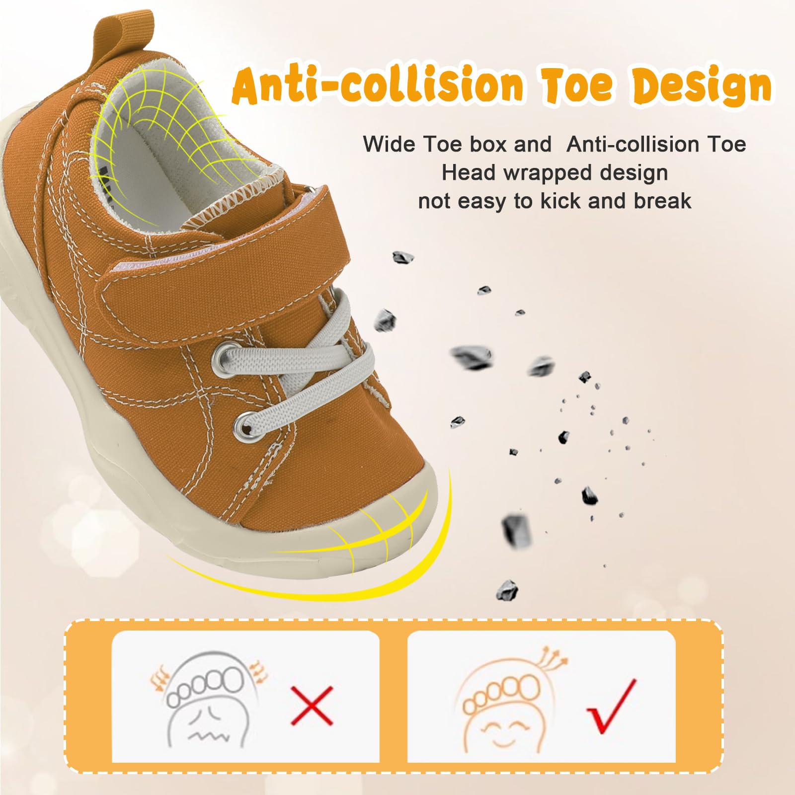 - Skin-friendly Material: These soft shoes for girls boys are made of high qualify canvas material, huges baby feet to keep them flexible and comfortable.The insole is a memory insole, which fits the shape of the baby's feet and make them feel like walking on clouds