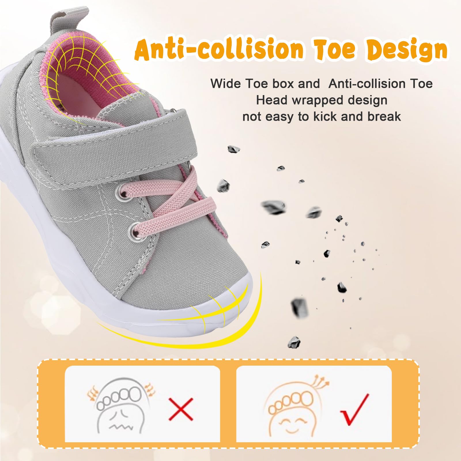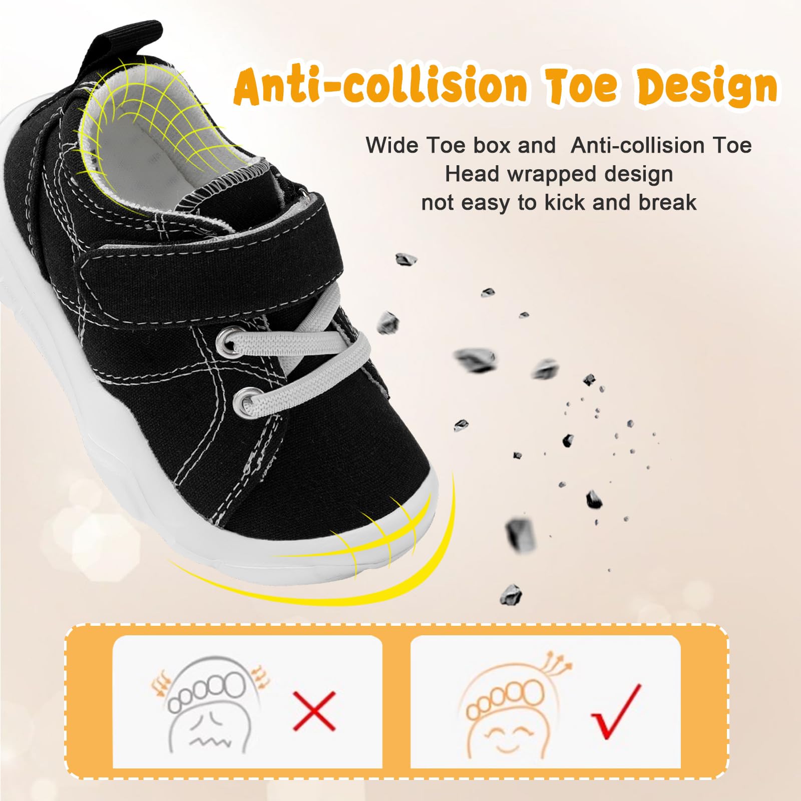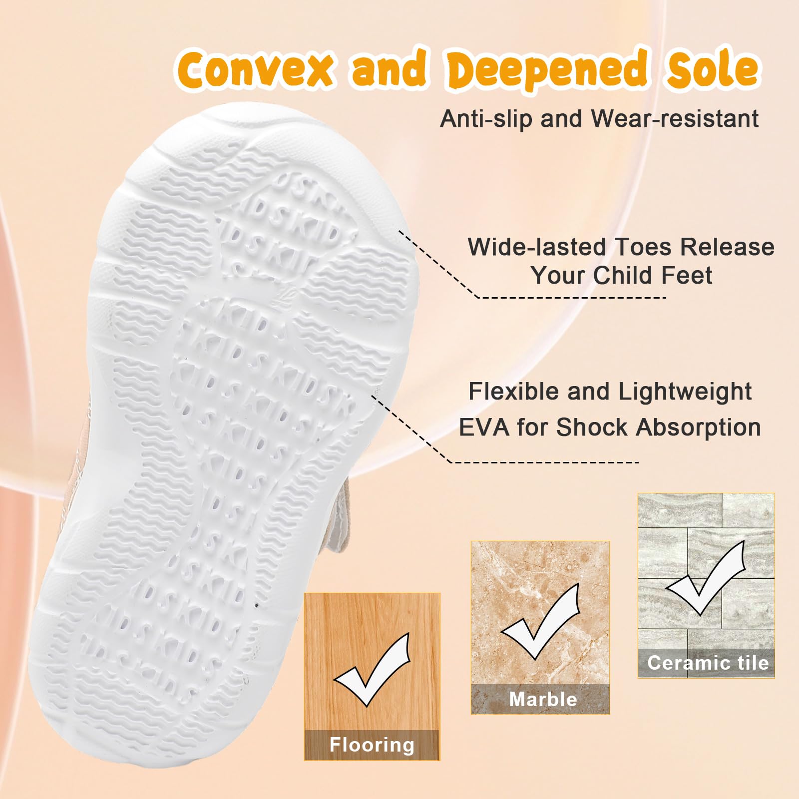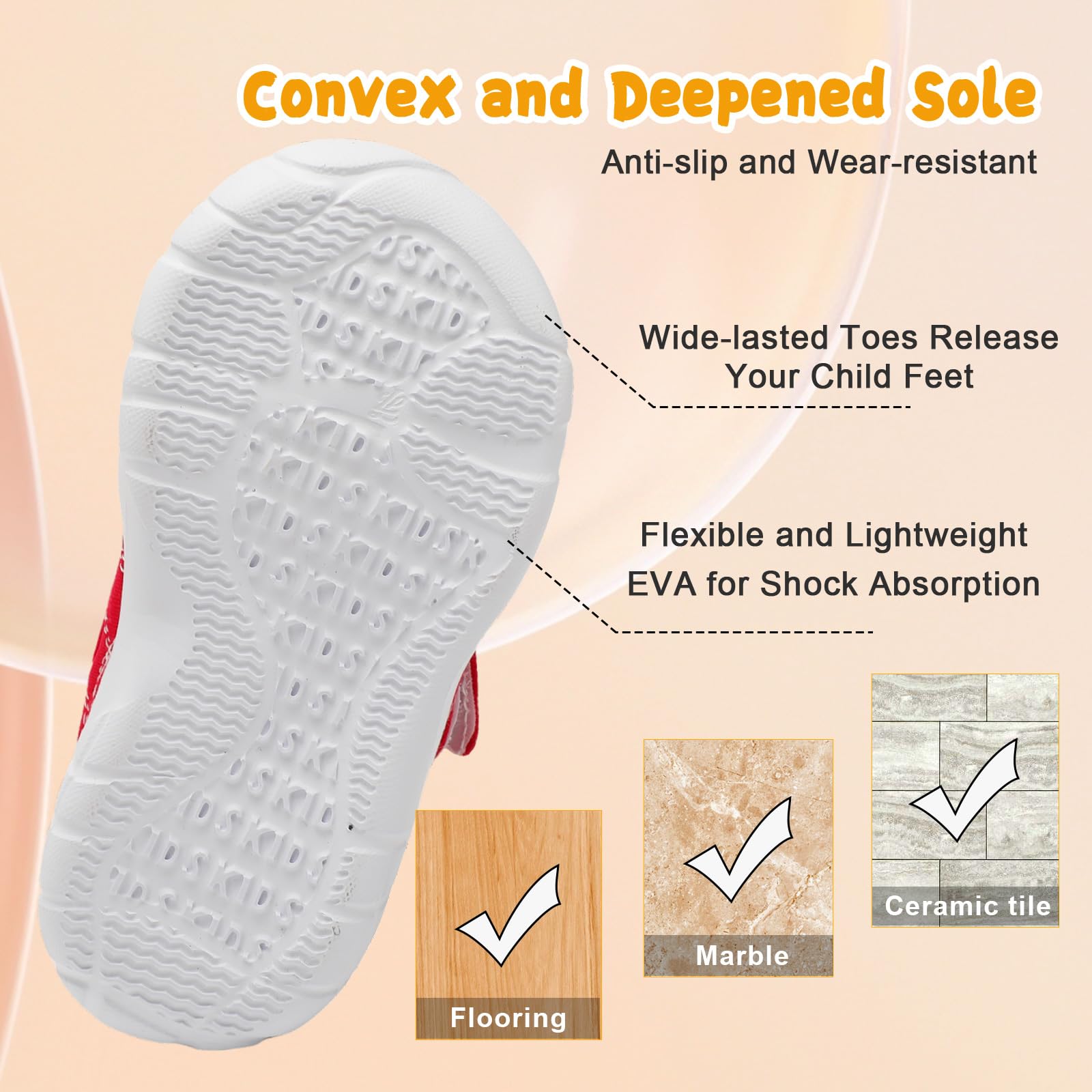 - Higher and Wider Toe Protection: Our toddler sneakers with reinforced wide toe box can protect the baby's feet from hitting objects, providing better protection for toddlers, keeping baby comfortable when they walking or bouncing, your baby will enjoy when doing outdoor activities