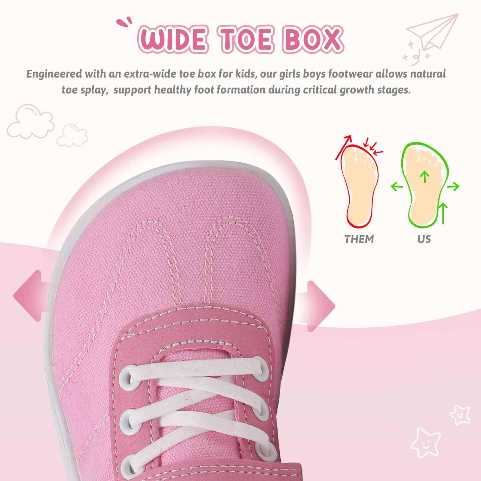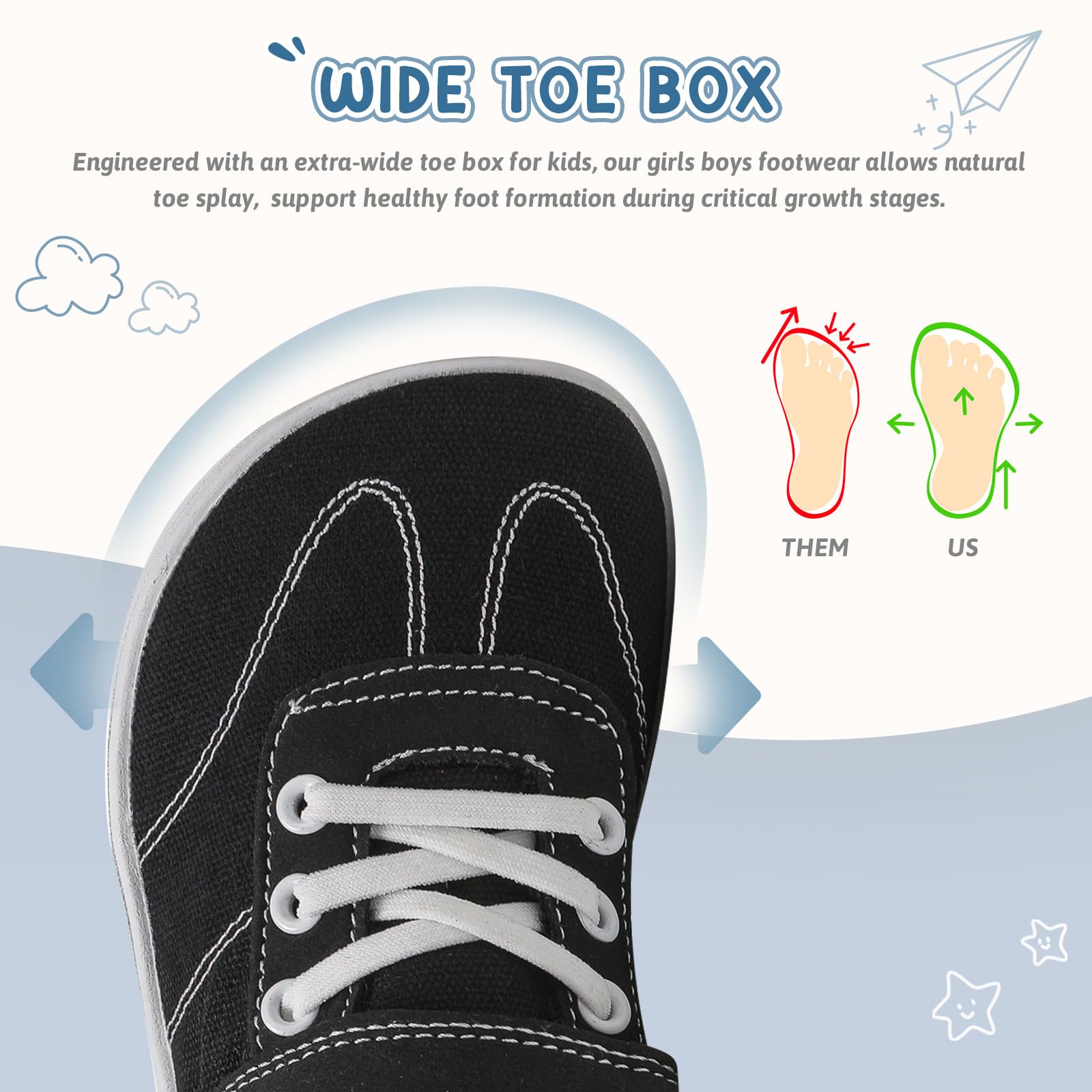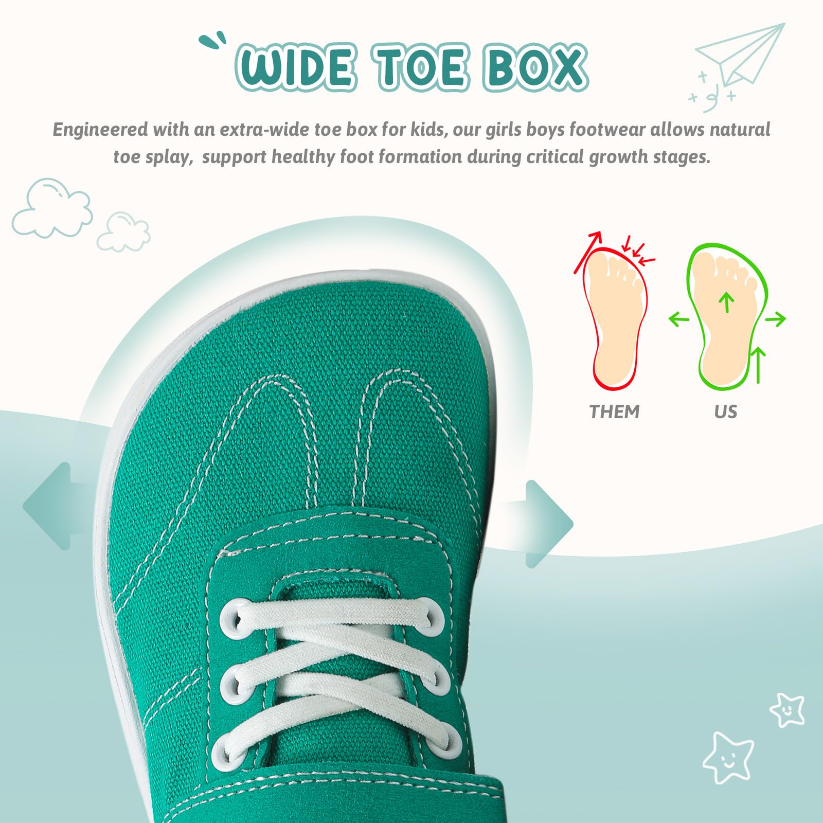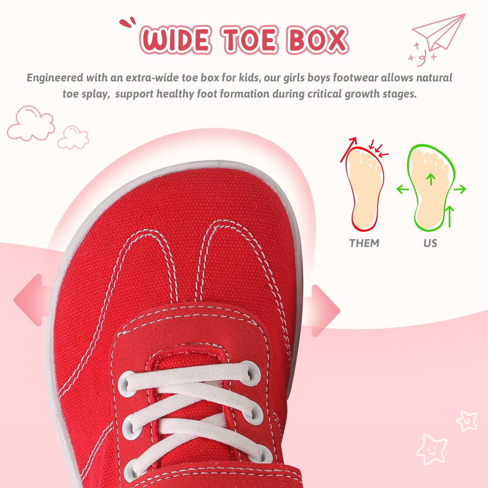 - Natural Foot Development Design: Engineered with an wide toe box for toddlers, our girls boys footwear allows natural toe splay, mimicking barefoot movement to support healthy foot formation during critical growth stages. The anatomical shape prevents toe crowding while durable canvas construction adapts to foot movements.