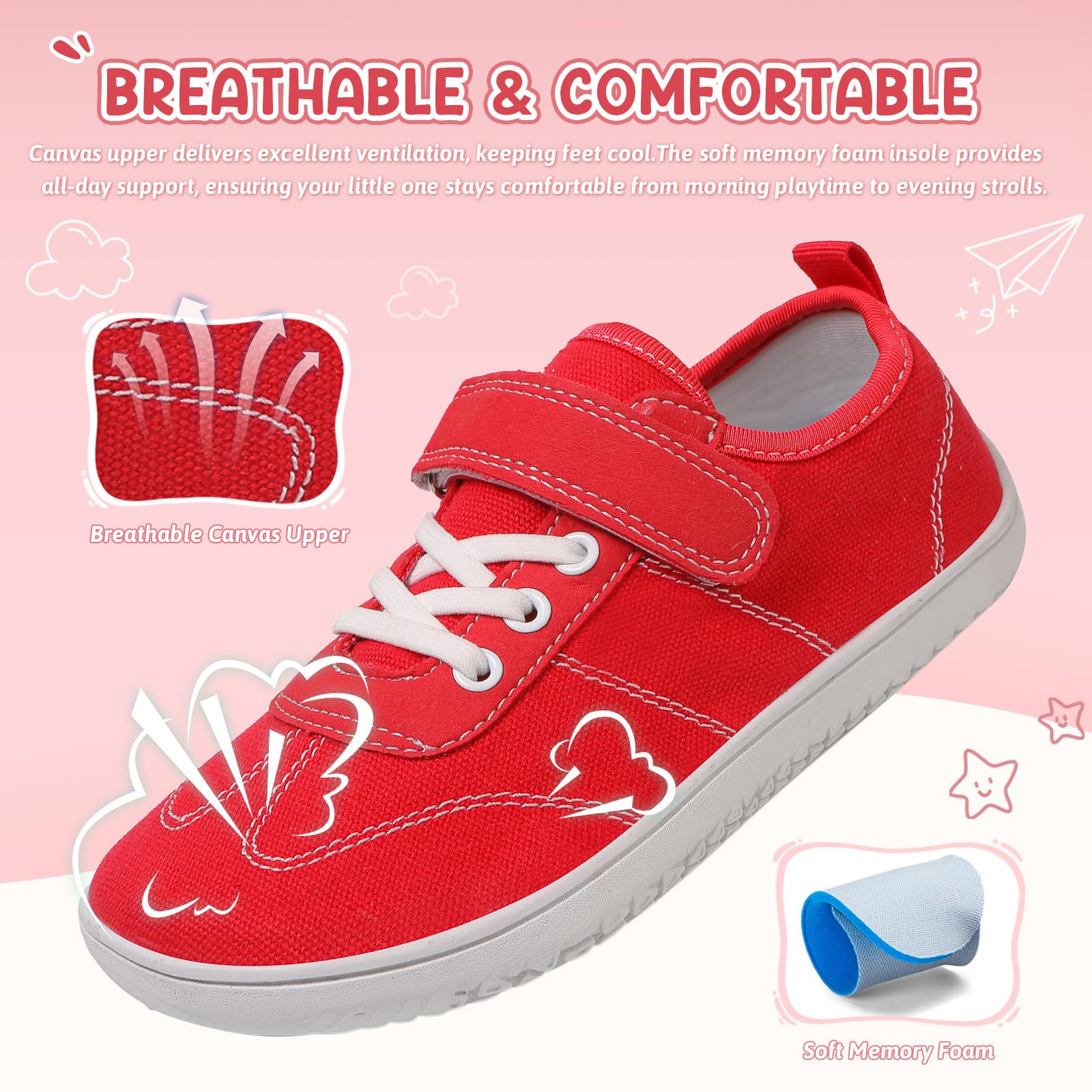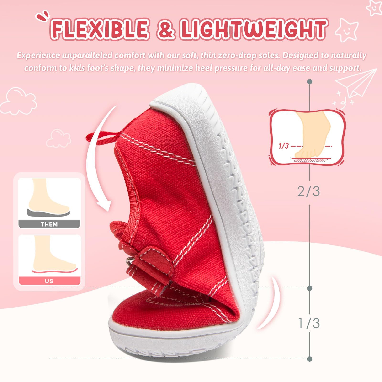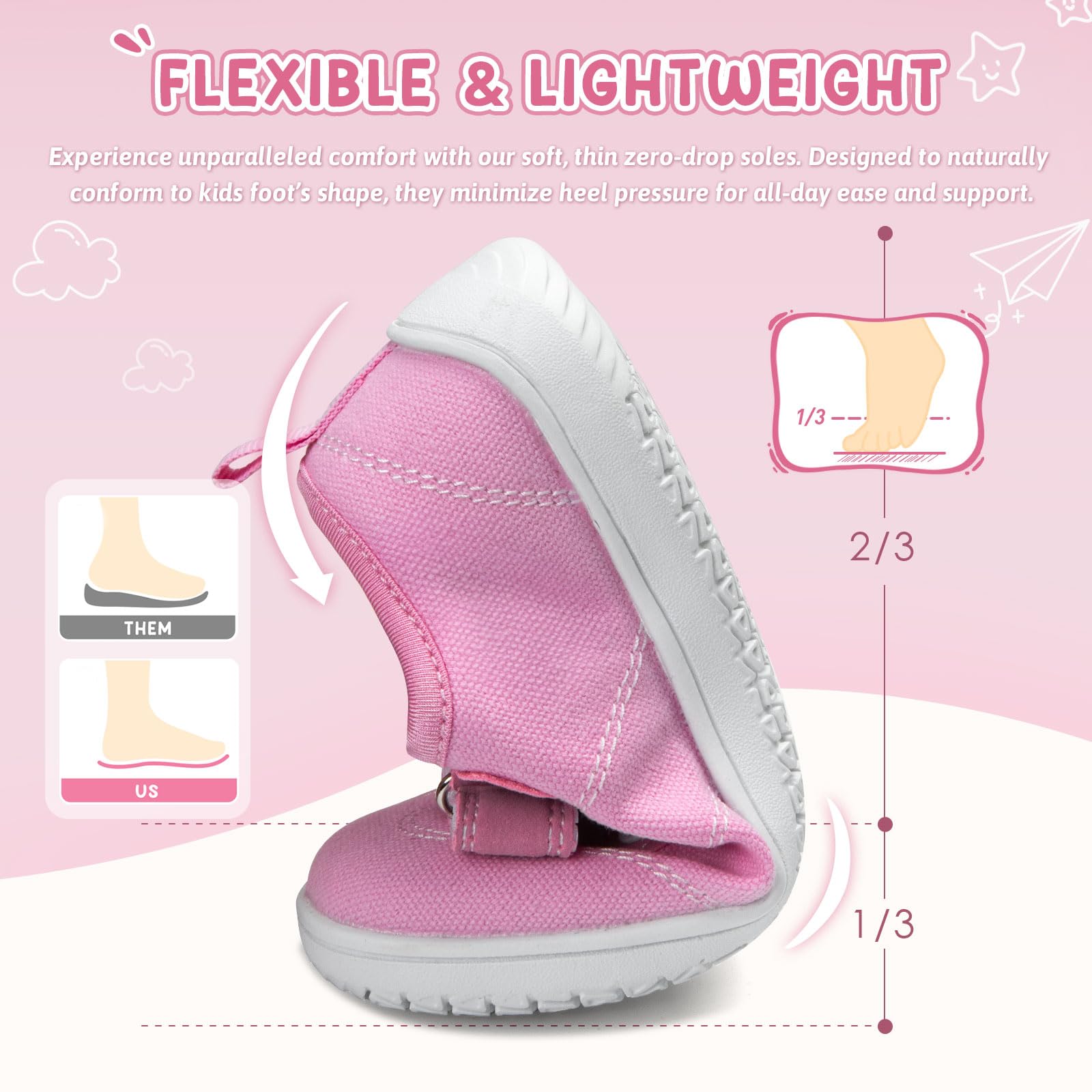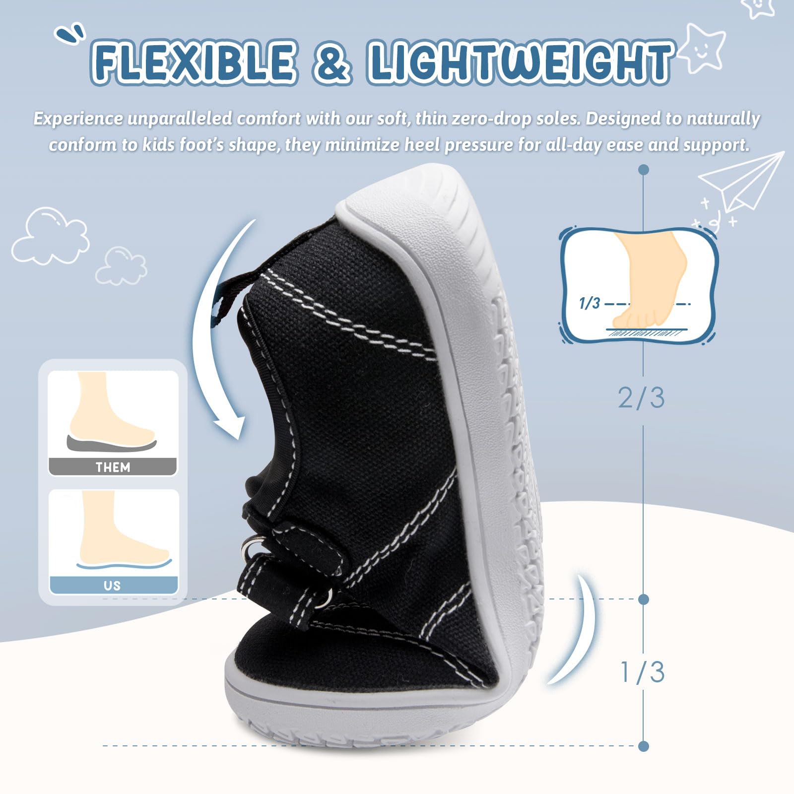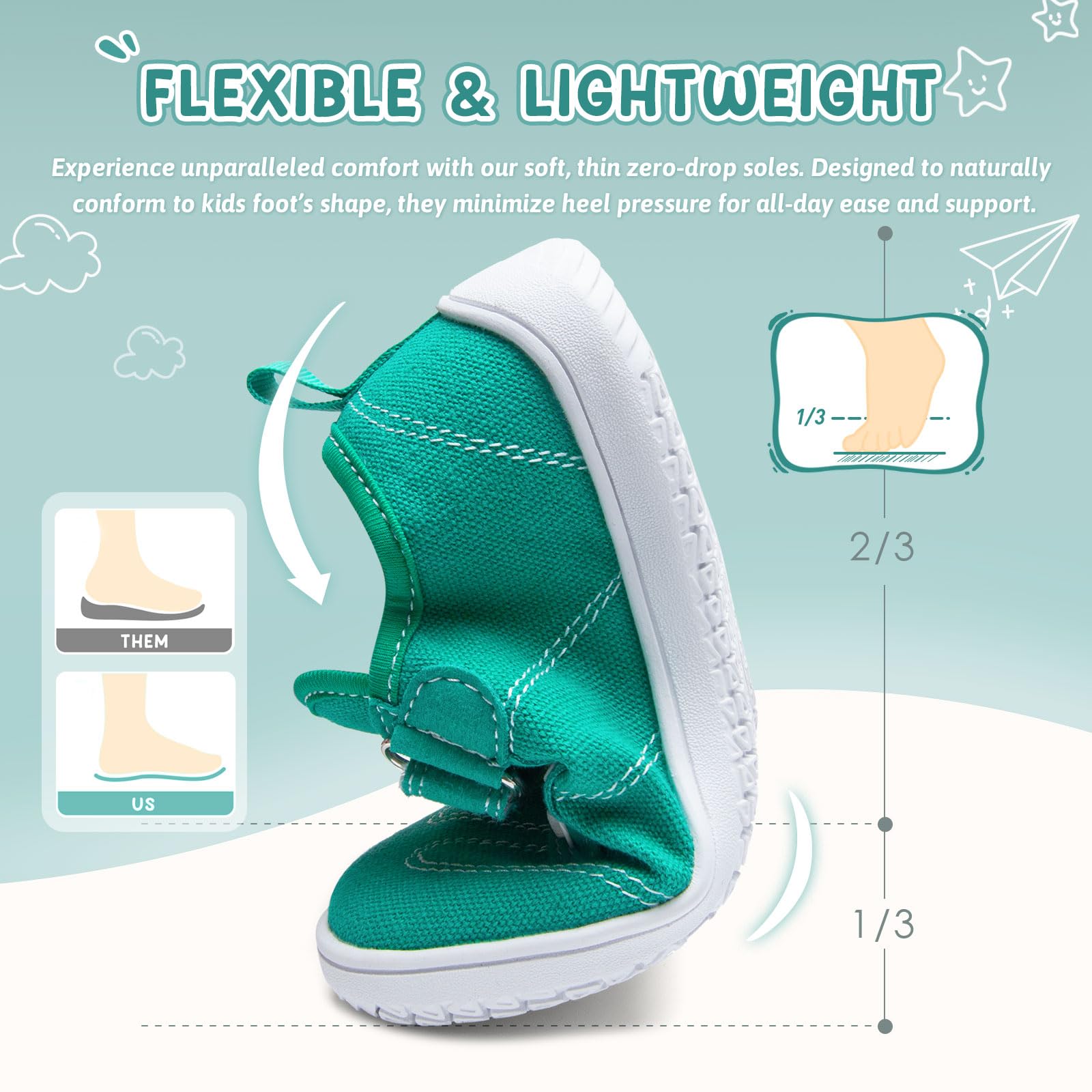 - Natural Foot Development Design: Engineered with an wide toe box for toddlers, our girls boys footwear allows natural toe splay, mimicking barefoot movement to support healthy foot formation during critical growth stages. The anatomical shape prevents toe crowding while durable canvas construction adapts to foot movements.