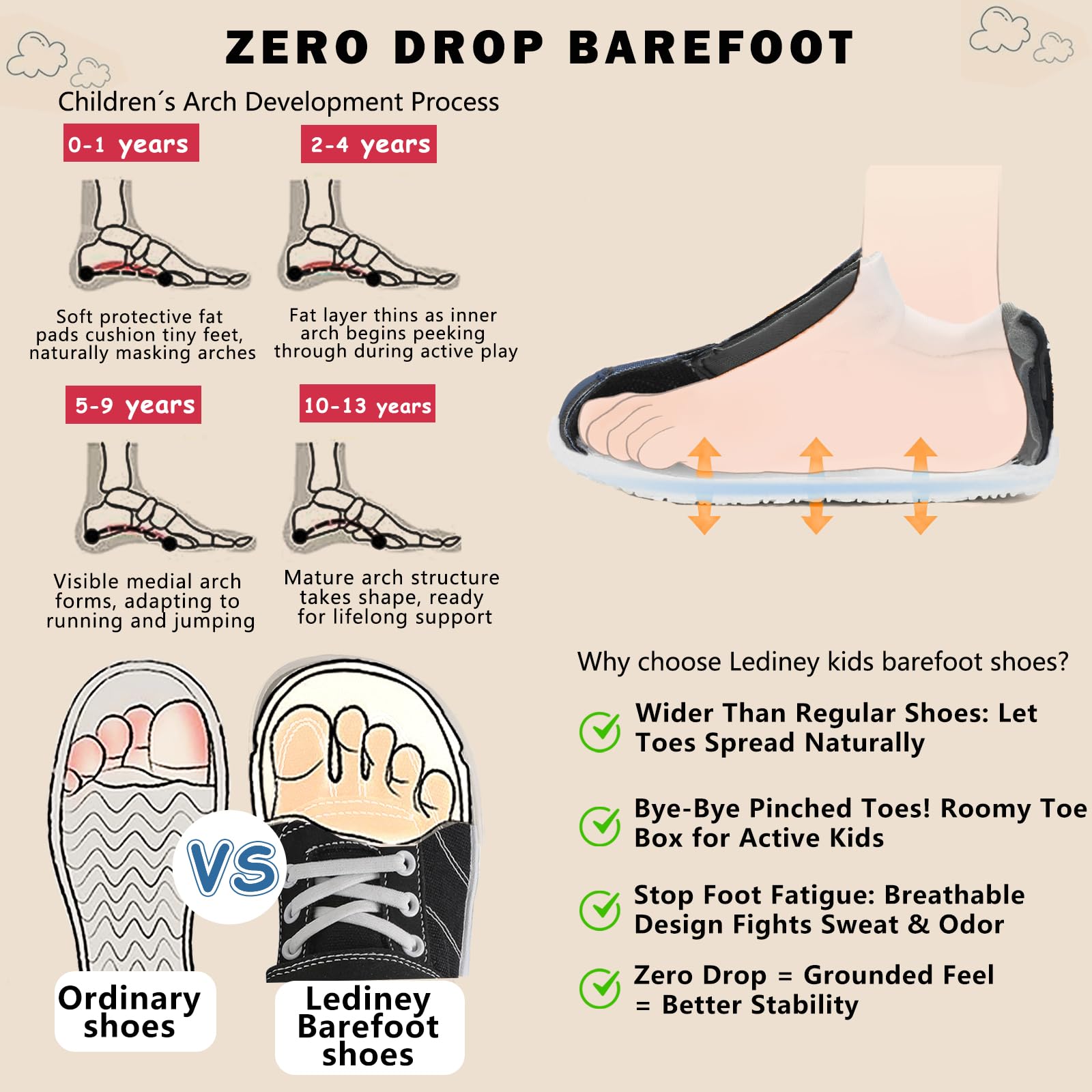 - True Barefoot Experience: Featuring a 5mm zero-drop sole, these toddler boys girls sneakers deliver authentic ground feedback. The thin and flexiable rubber outsole maintaining 92% ground sensory input for improved balance and motor skill development.