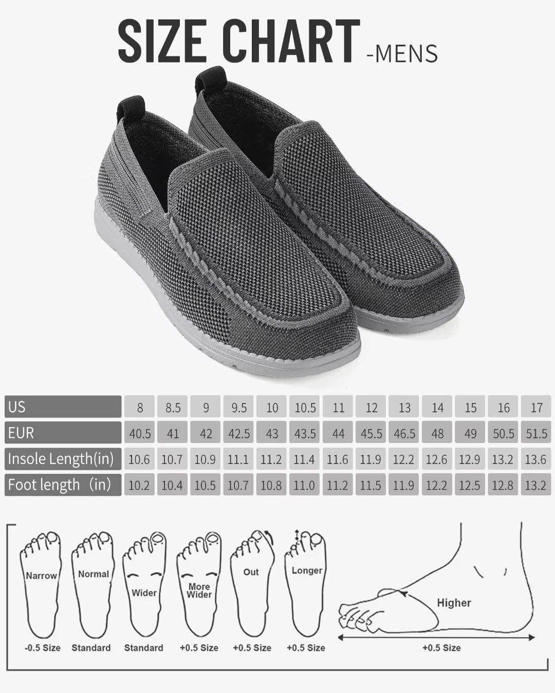- 𝐌𝐄𝐍'𝐒 𝐒𝐓𝐑𝐄𝐓𝐂𝐇 𝐂𝐀𝐒𝐔𝐀𝐋 𝐋𝐎𝐀𝐅𝐄𝐑𝐒:Tired of burning pain in your heels or arches? Wide men's flip flops are also diabetic men's shoes, men's orthopedic shoes, stretch mesh fabric, lightweight and comfortable, choose it and face this problem, you are not alone