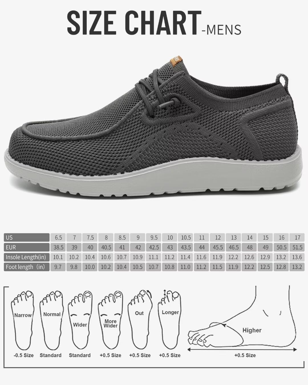 - 𝐌𝐄𝐍'𝐒 𝐖𝐈𝐃𝐄 𝐁𝐎𝐀𝐓 𝐒𝐇𝐎𝐄𝐒:If you have skinny feet, we recommend ordering a half size smaller; if you have wider feet, you can order your usual size. These men's breathable elasticized wide-top boat shoes are suitable for casual and office use