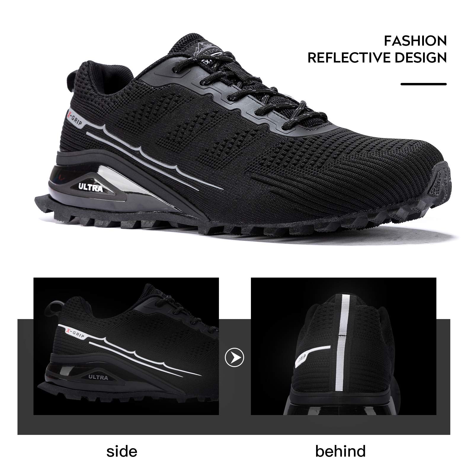 - Lightweight & Wear-resistant:Men's trail running Shoes mesh fabric upper designed which allows air movement to keep your feet from overheating.Amazing breathability and lightweight support that make your foot always keeps dry and cool.