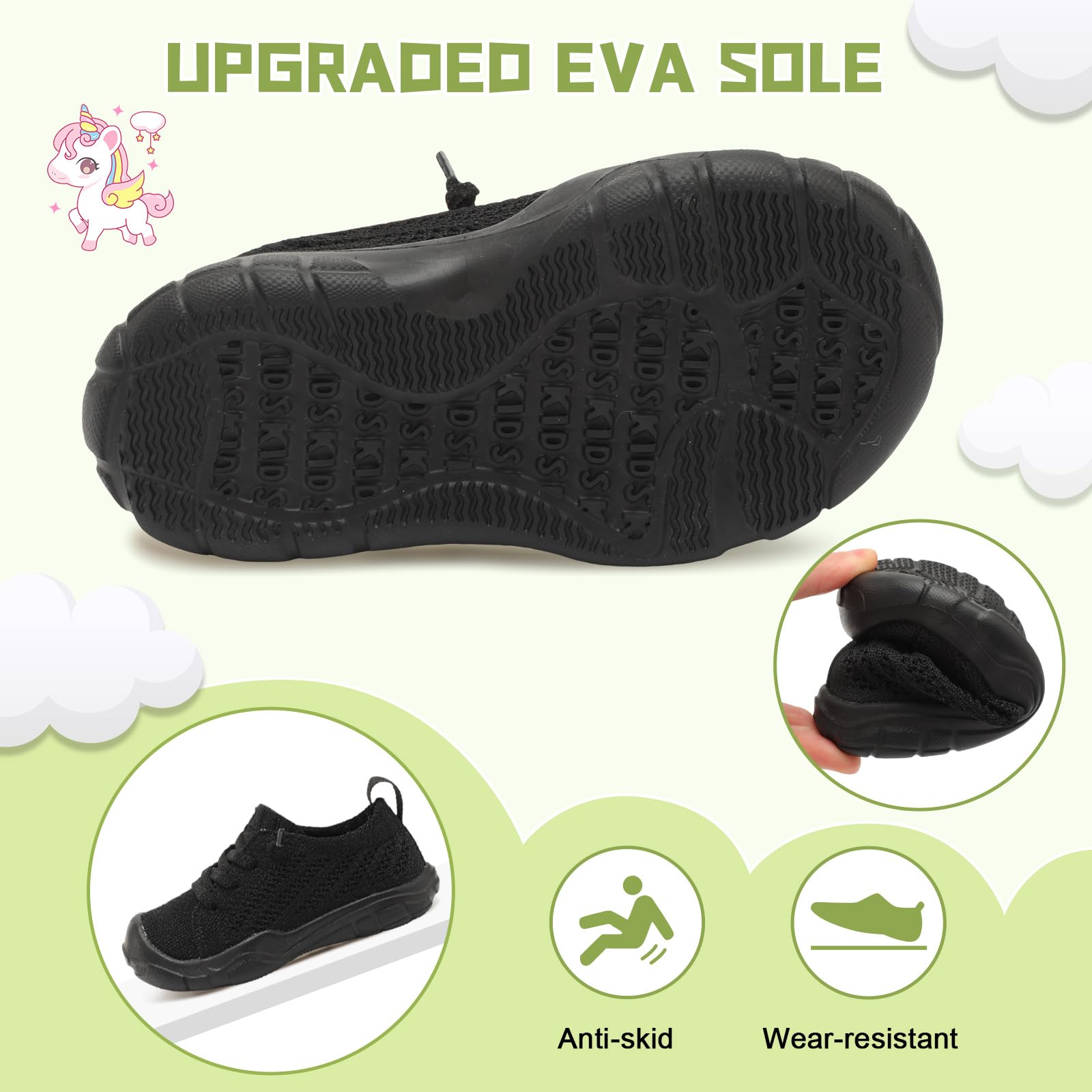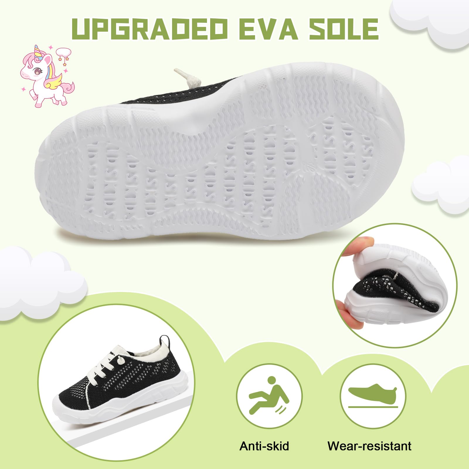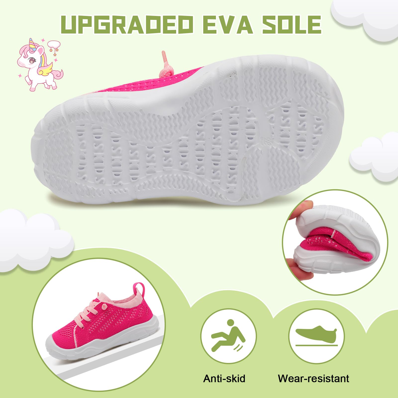 - Non-slip and Wear-resistant:The EVA sole of toddler barefoot shoes is flexible and non-slip, with an anti-slip texture for superior grip and traction while running, playing, or walking