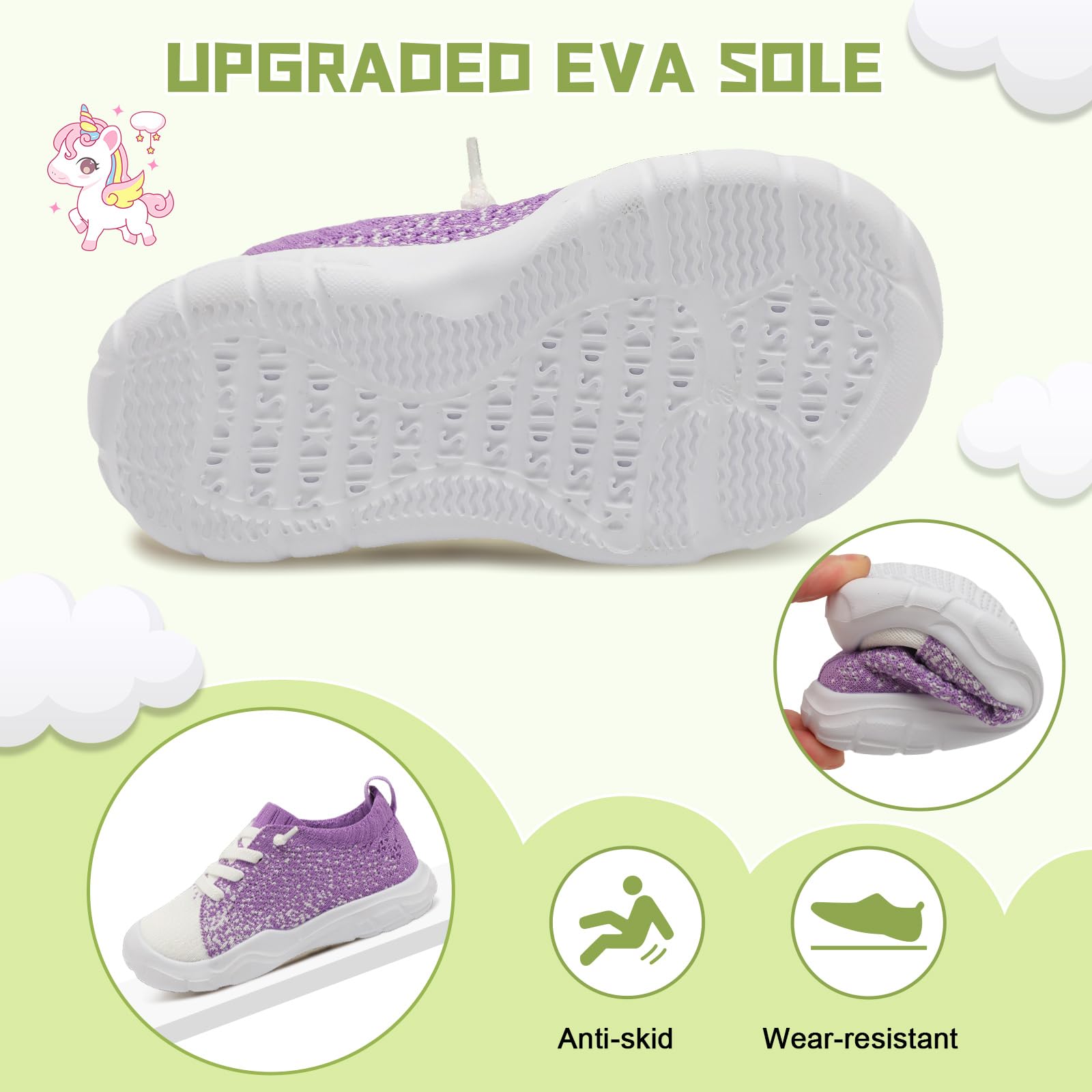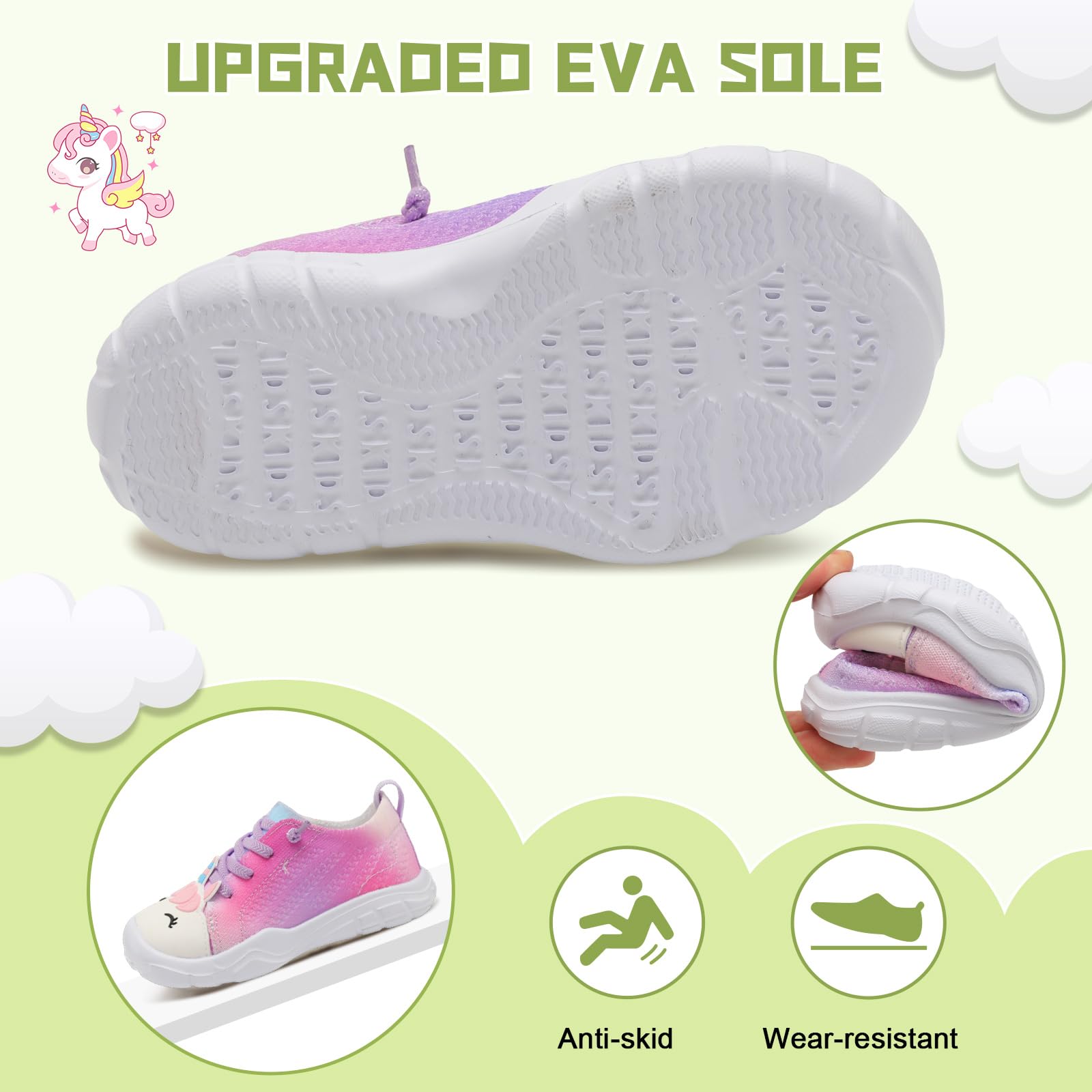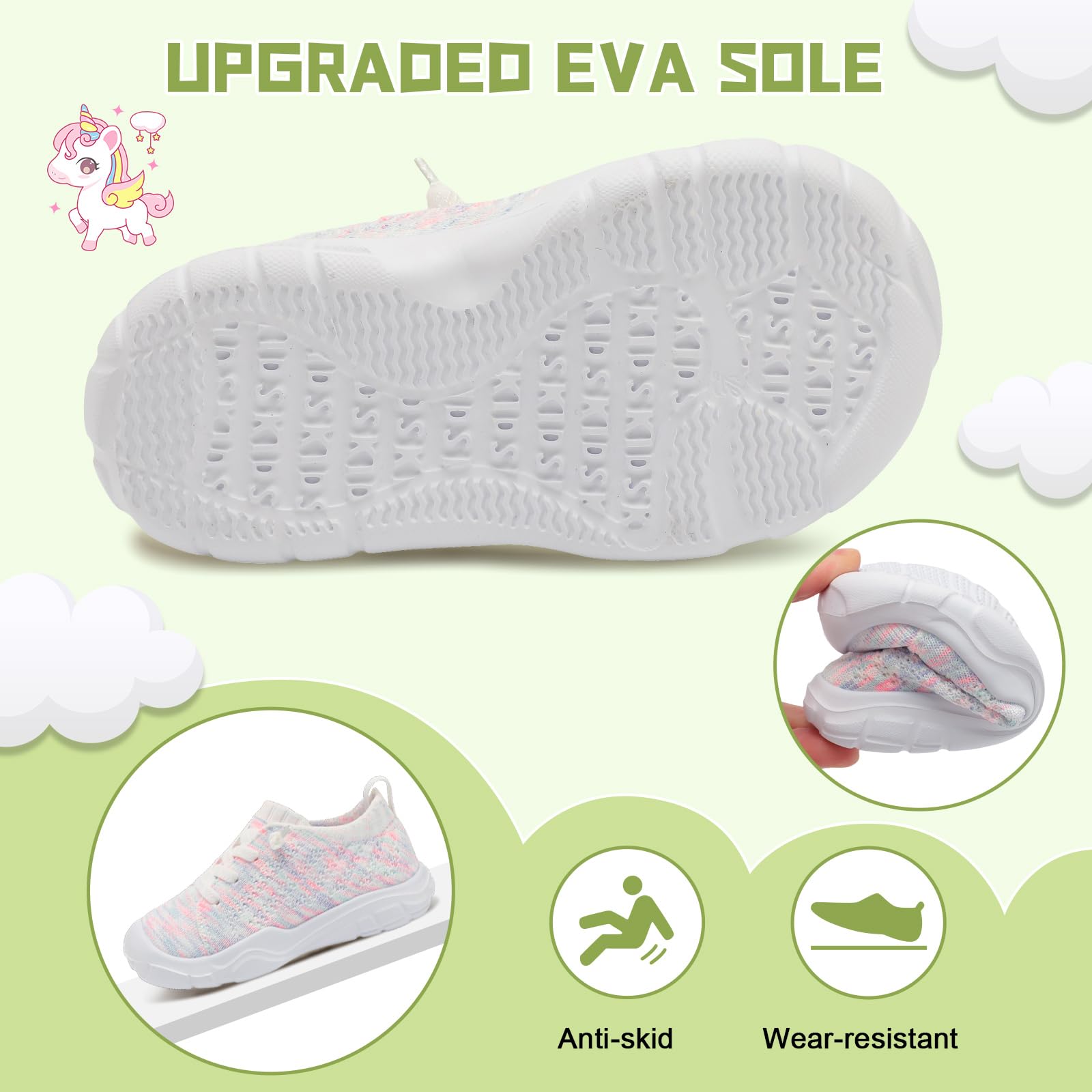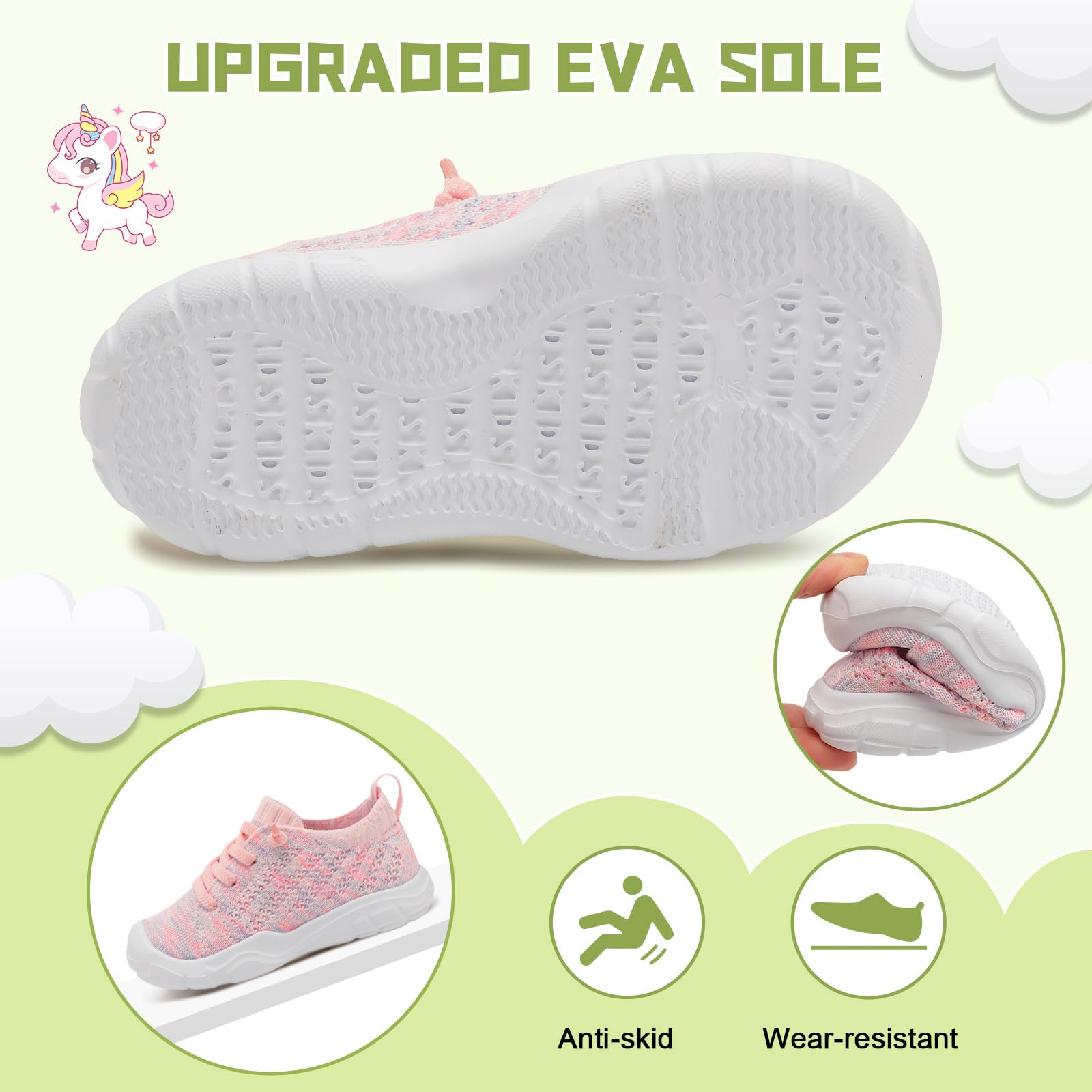 - Non-slip and Wear-resistant:The EVA sole of toddler barefoot shoes is flexible and non-slip, with an anti-slip texture for superior grip and traction while running, playing, or walking