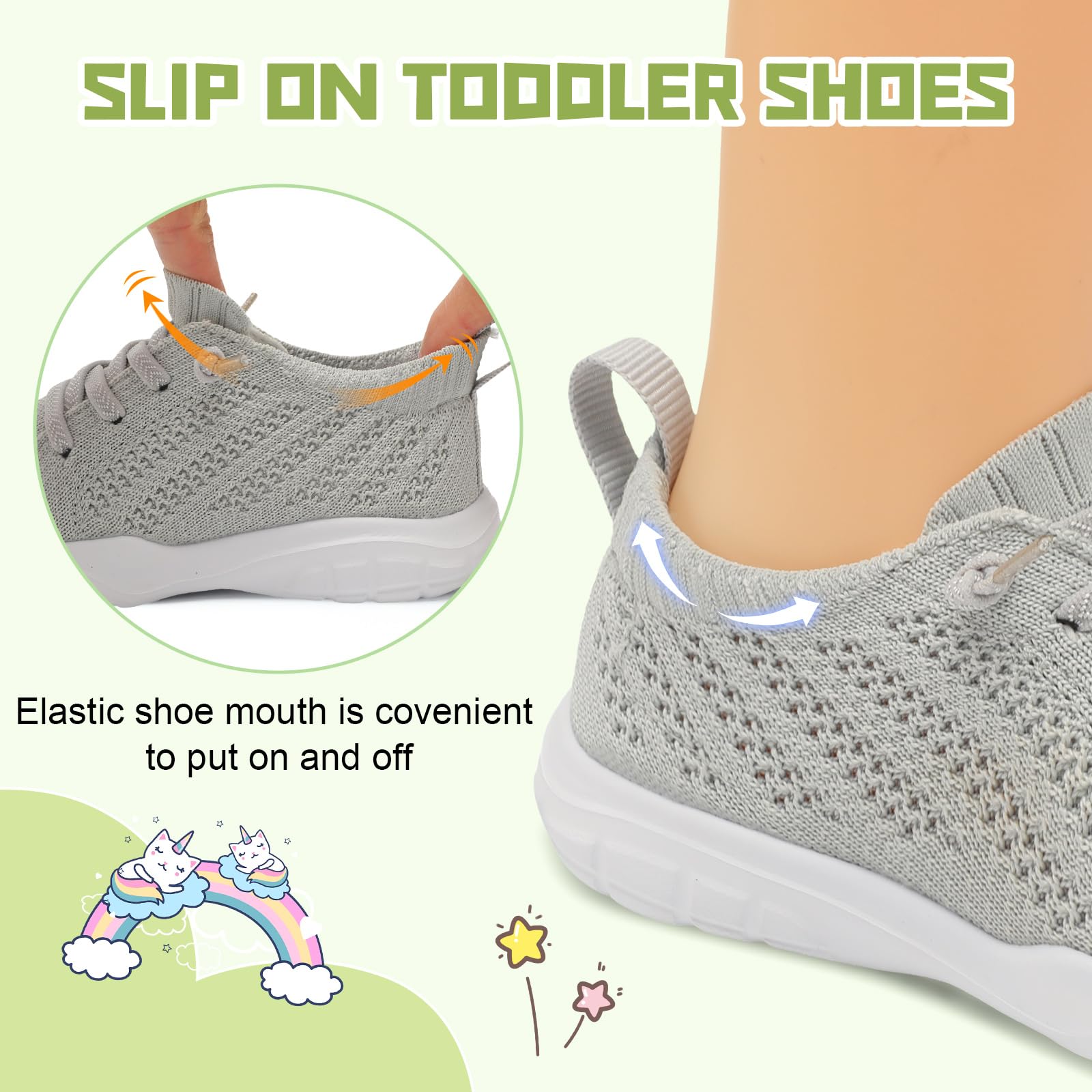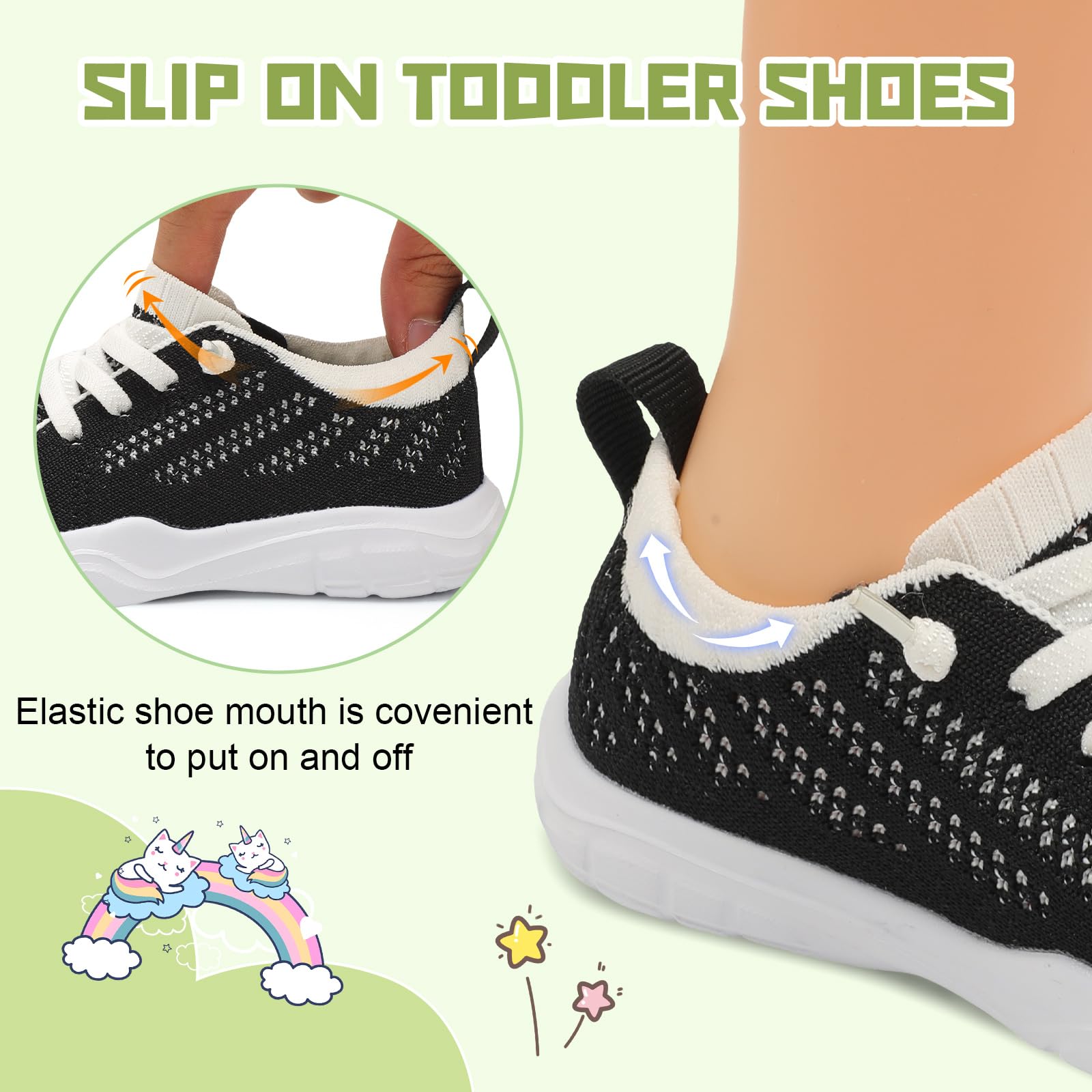 - Easy to Wear:Toddler Slip on Shoes for boys and girls feature elastic shoe mouth, which allows toddler to put on and take off easily and won’t fall off