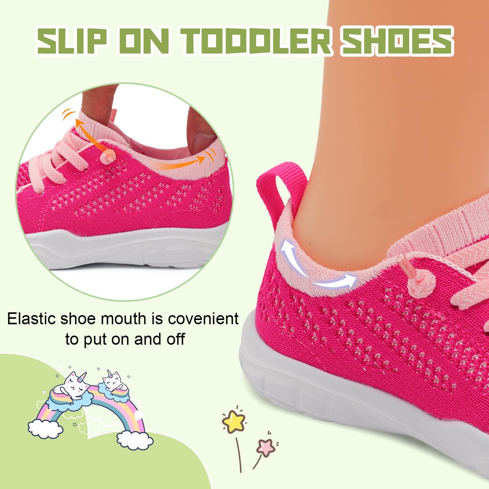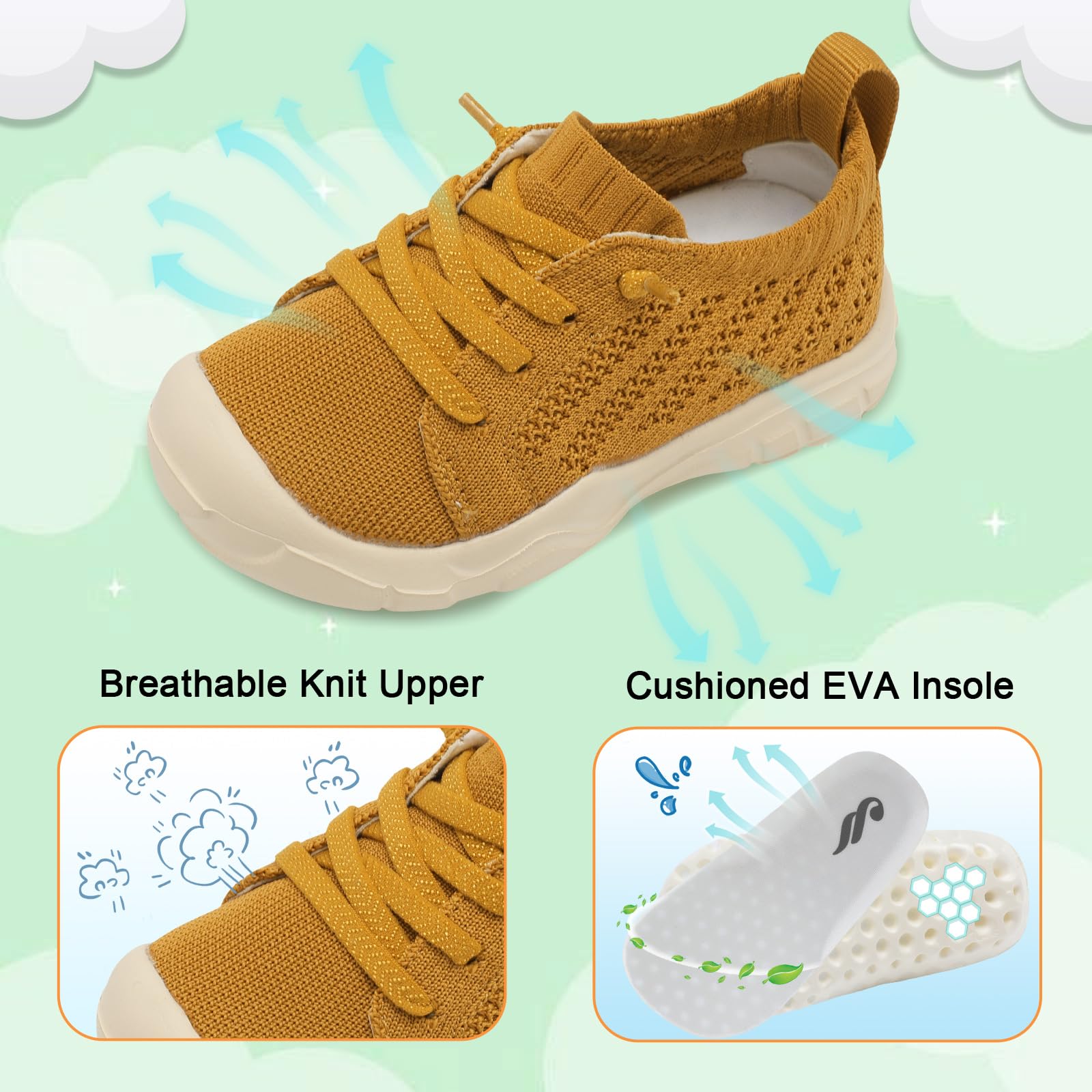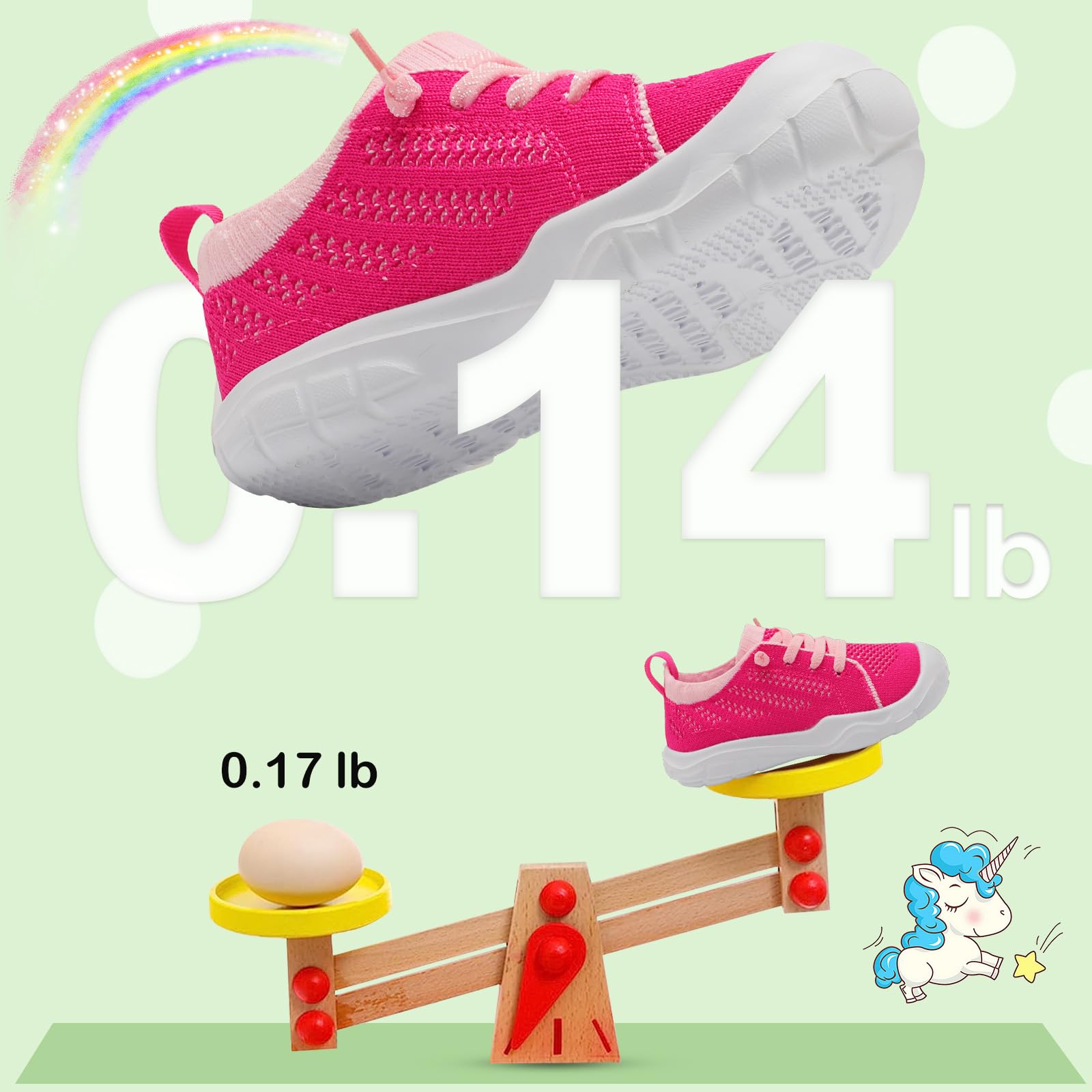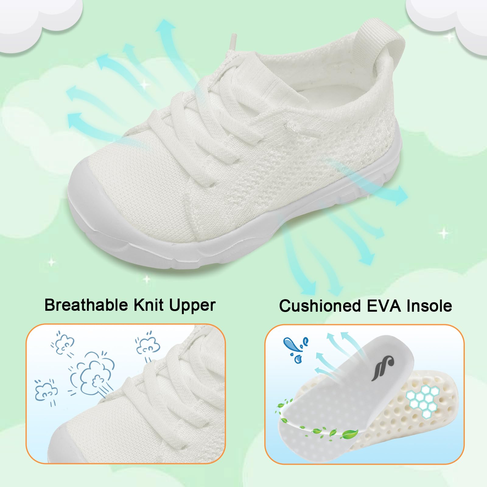 - Lightweight and Breathable:Toddler Sneakers are made of ultra lightweight materials offers more comfort and less burden. Friendly knit Upper keep feet dry and snug during walking or running