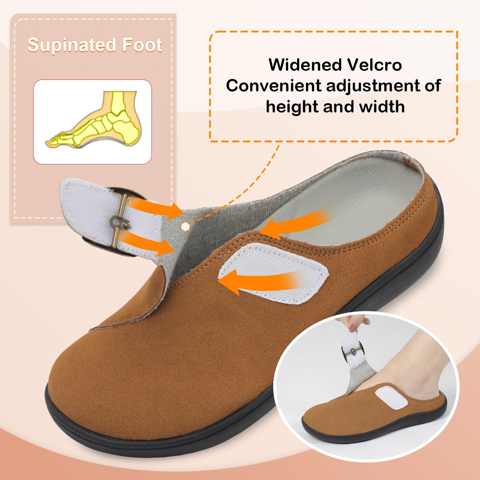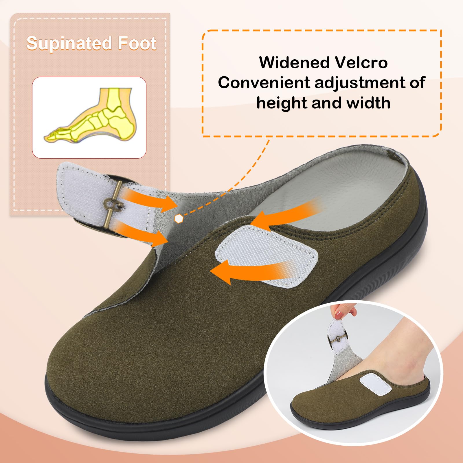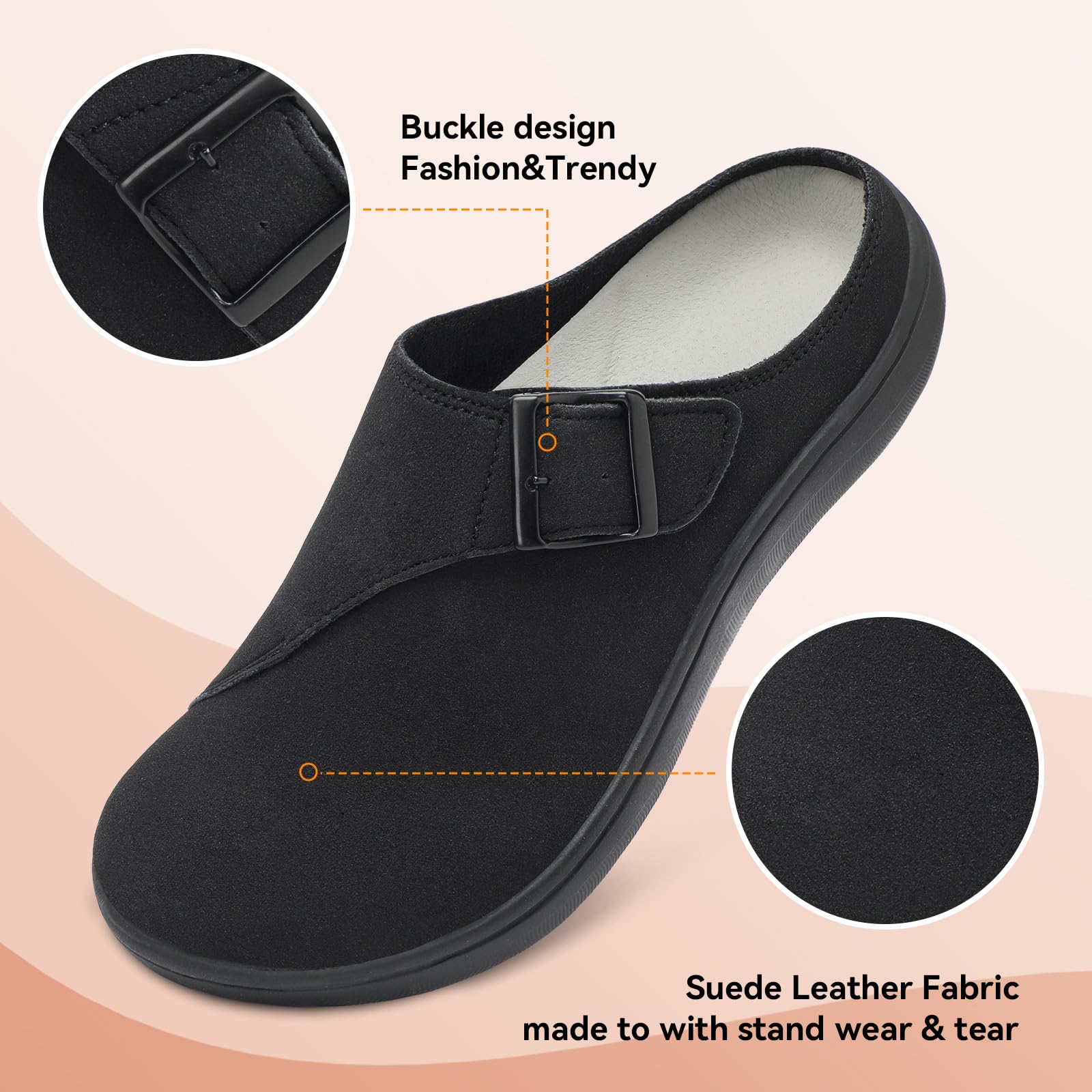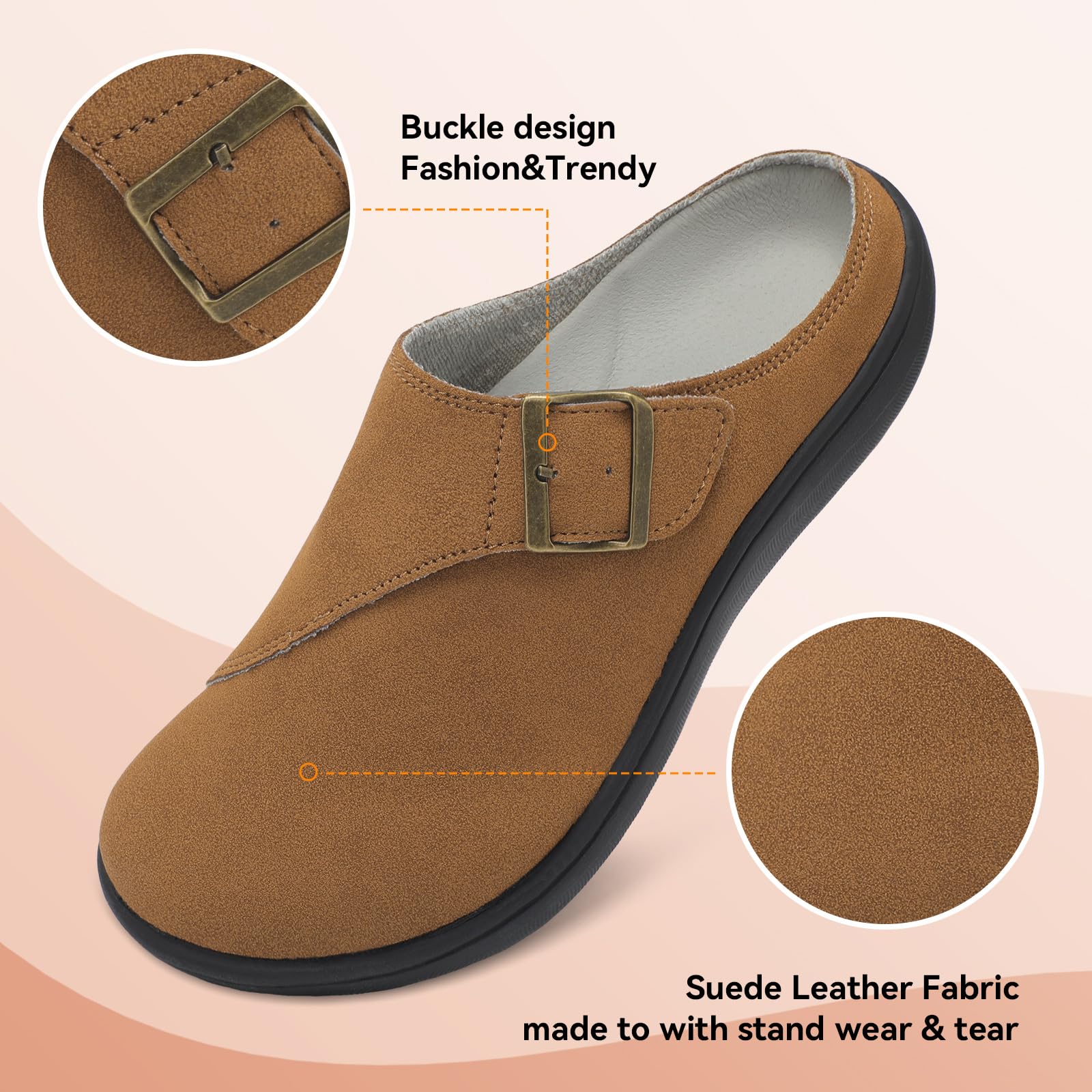 - These new style clogs for women are crafted with suede leather uppers, blend durability and aesthetics seamlessly, adjustable hook and loop ensures a perfect fit, easy to put on and take off, meets the needs of different foot types
